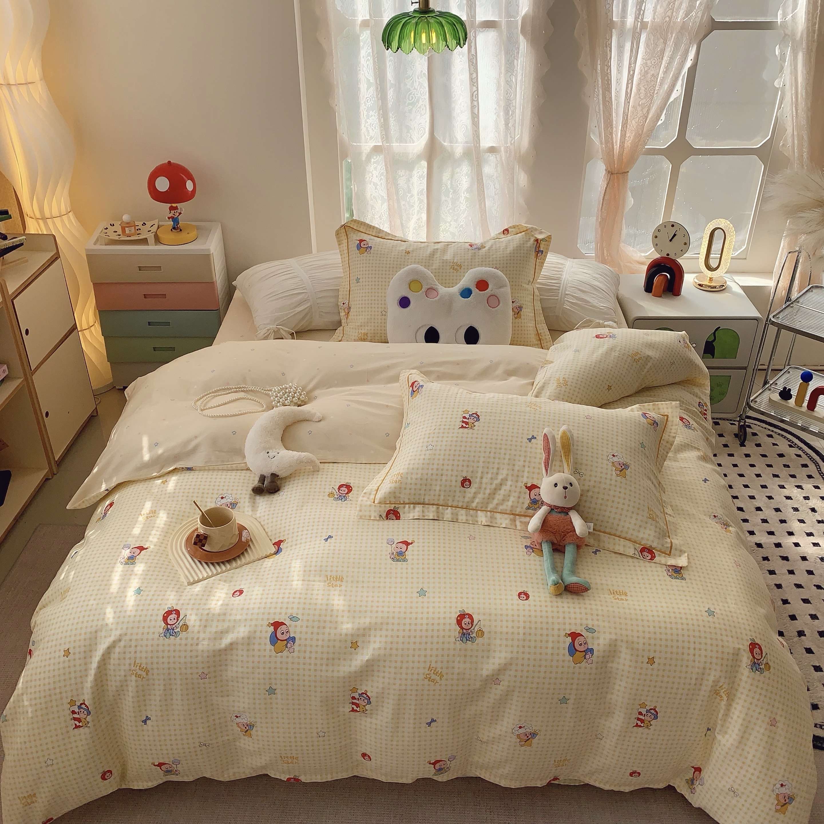 (总)莱豫家纺 2025新款小清新全棉纯棉四件套,爱心豹纹,白薇,春黛,芳华,锦绣咖,锦绣米,可爱狗狗咖,太空超人,甜橘,童年,仙本娜,小飞马,小小花园,星星人黄,星星人蓝,雅蔓