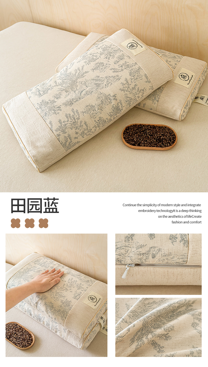 当前位置: 91家纺网 > 商品网购 > 枕头/枕芯/保健枕/颈椎枕 > 枕头枕芯 > 麦肯锡 2025新款棉麻古朴荞麦助眠枕 枕头枕芯 田园蓝/对