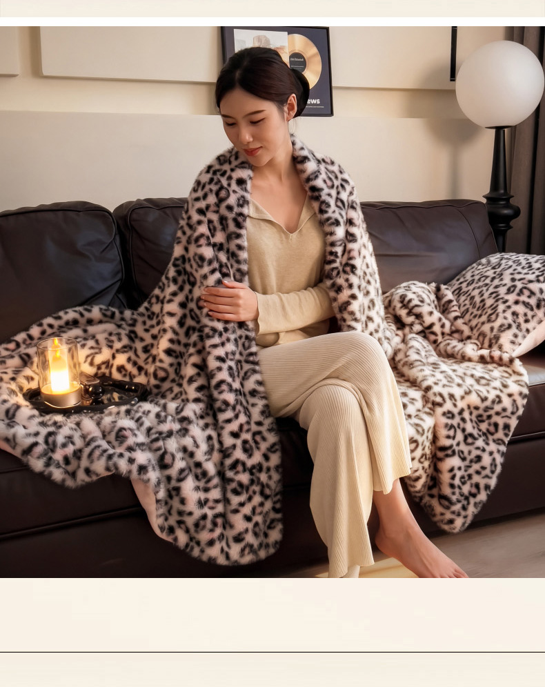 商品名称:九花鹿 2025新款丹麦皮草绒水貂绒盖毯毛毯毯子-豹纹 豹纹粉