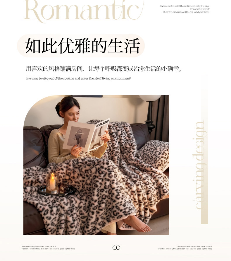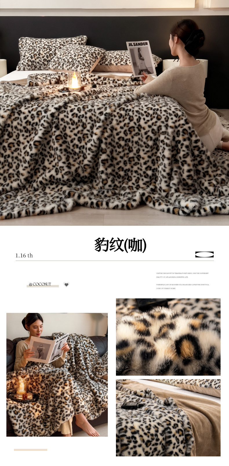 (总)九花鹿 2025新款丹麦皮草绒水貂绒盖毯毛毯毯子-豹纹,豹纹粉,豹纹灰,豹纹咖