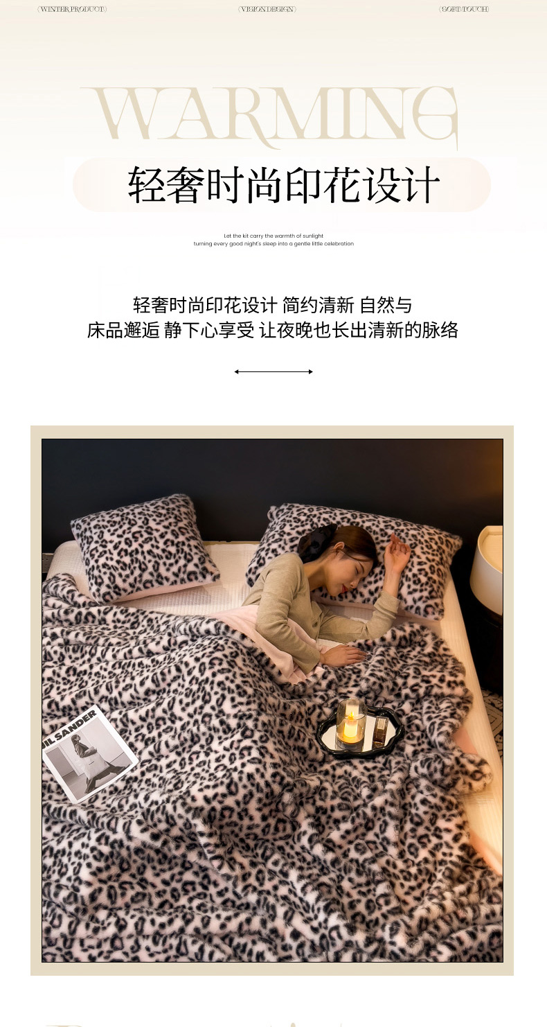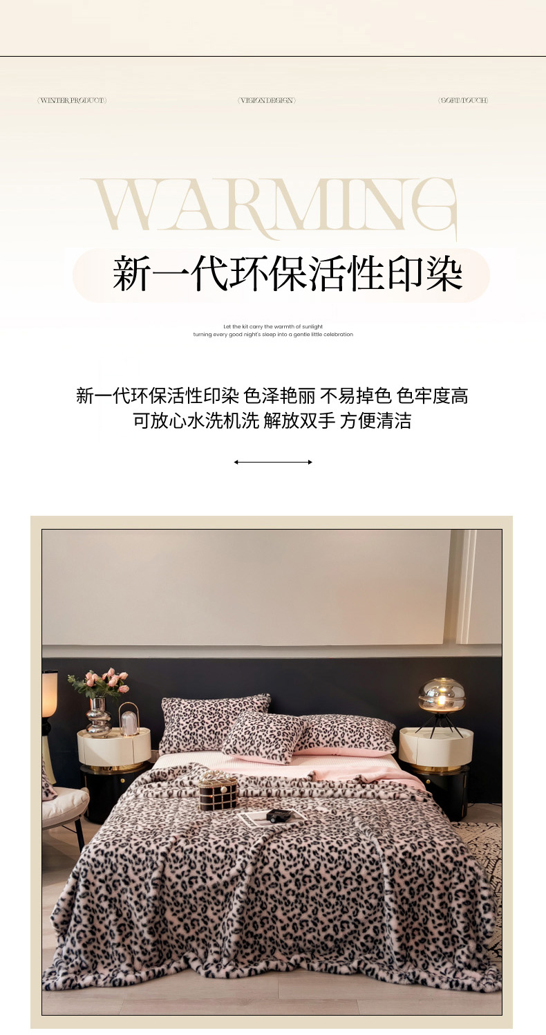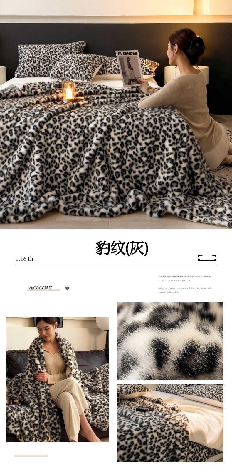 (总)九花鹿 2025新款丹麦皮草绒水貂绒四件套,豹纹-粉,豹纹-灰,豹纹-咖