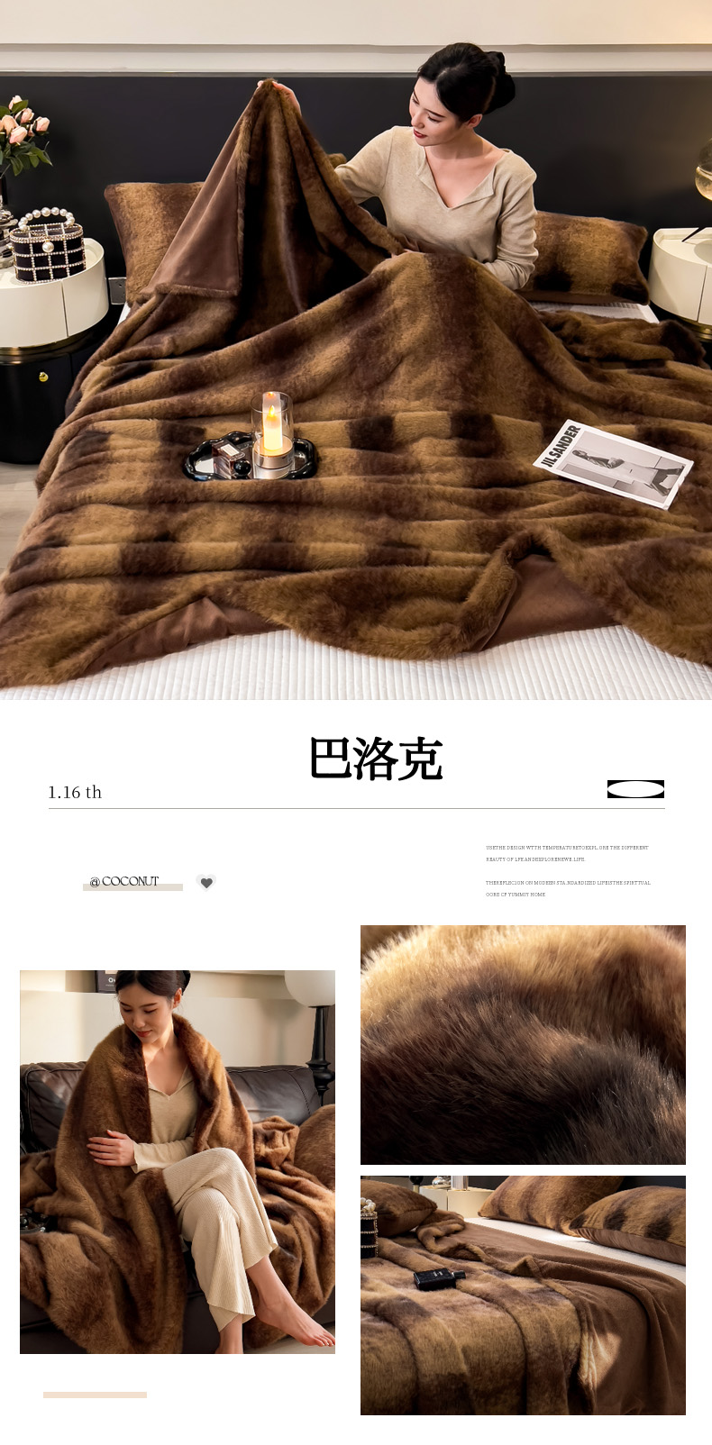 商品名称:(总)九花鹿 2025新款丹麦皮草绒水貂绒盖毯毛毯毯子