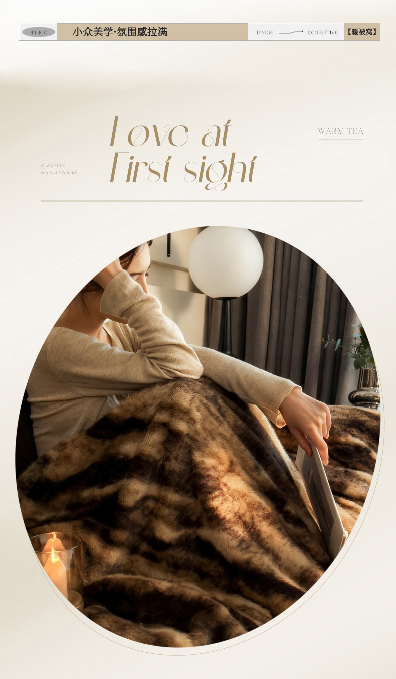 (总)九花鹿 2025新款丹麦皮草绒水貂绒盖毯毛毯毯子