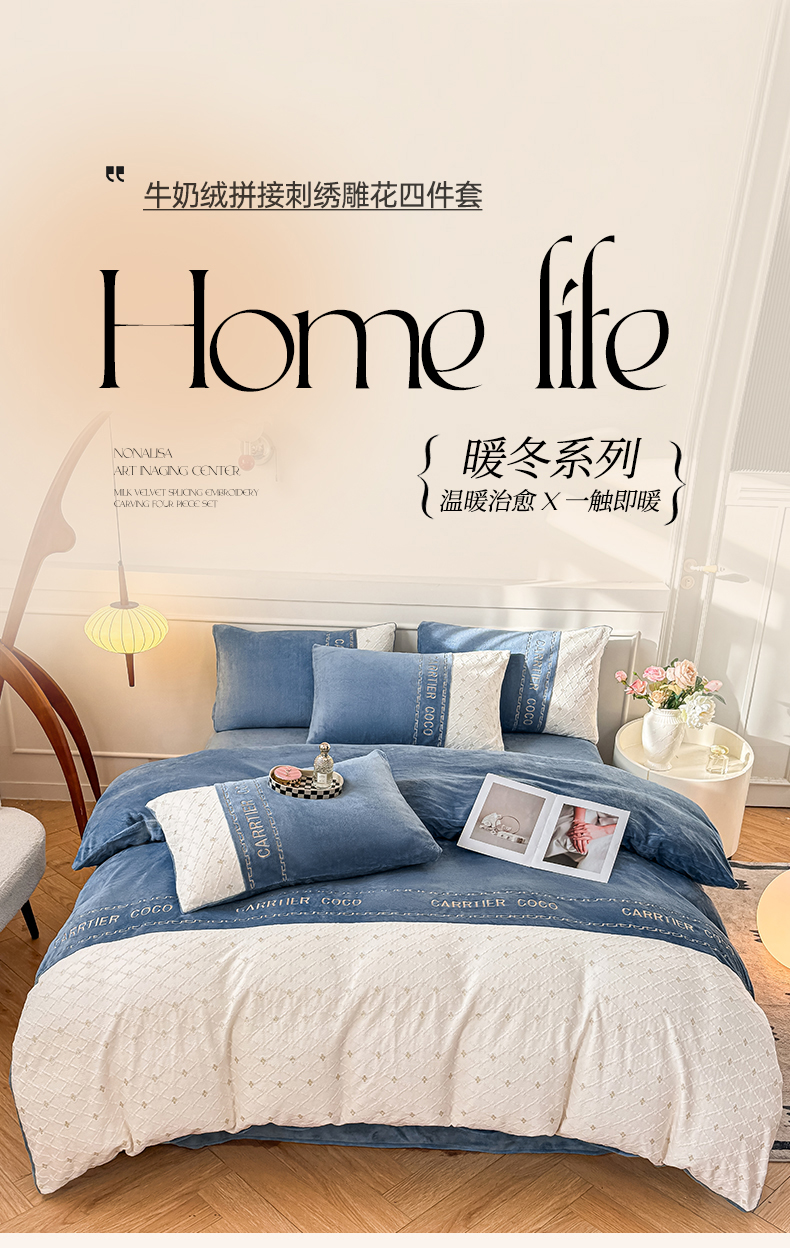 当前位置: 91家纺网 > 商品网购 > 床品套件 > 四件套 > 牛奶绒四件套 > 灰鲸 2025新款牛奶绒拼接刺绣雕花四件套-可可 可可-抹茶绿