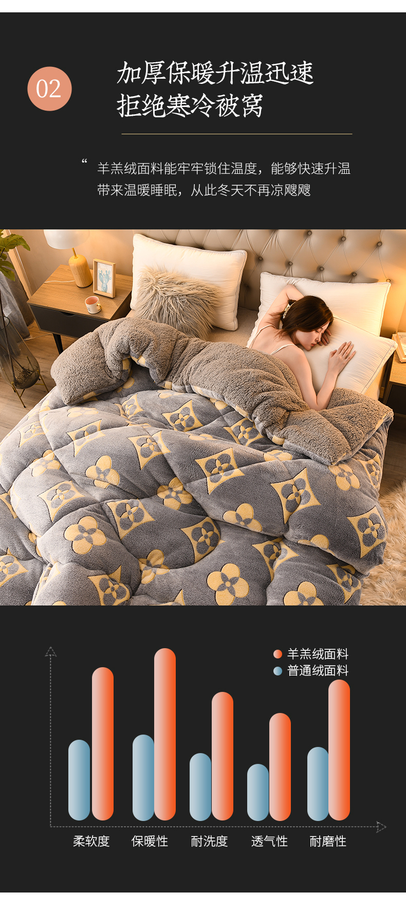 商品名称:春雨家居 2025新款AB版雪花绒羊羔绒冬被被子被芯 字母狗