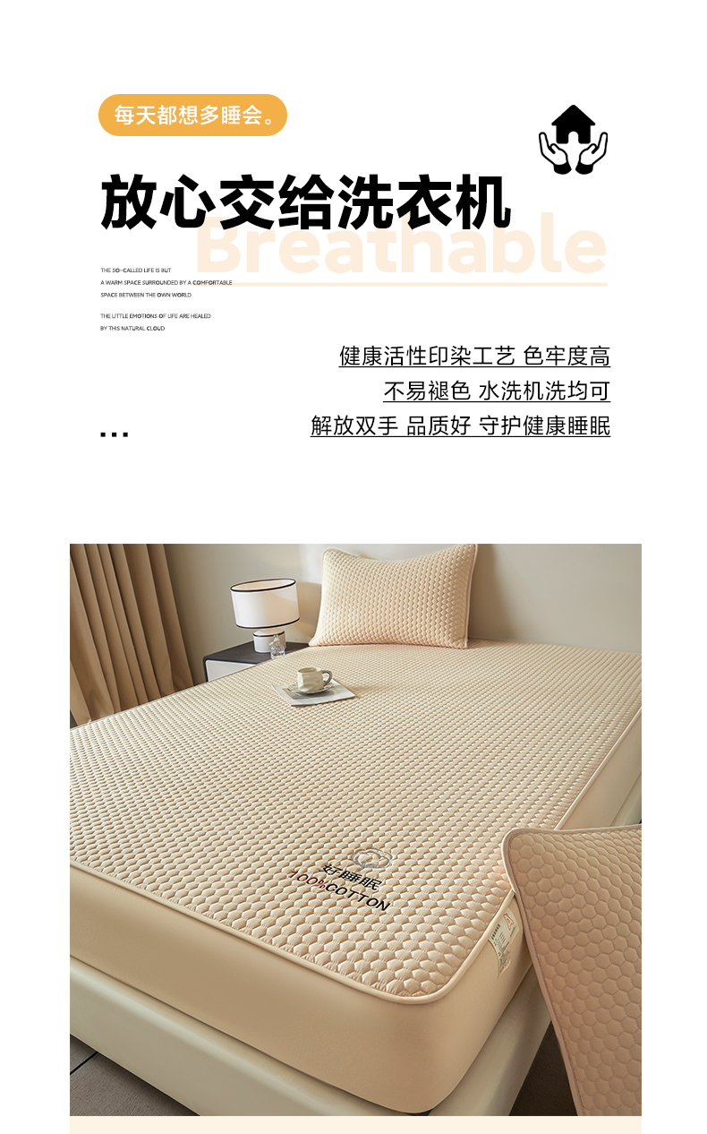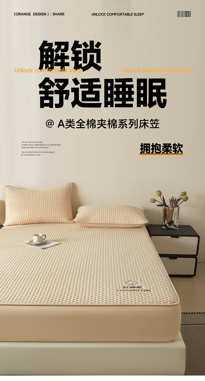 芬晴家纺 2025新款A类好睡眠全棉夹棉系列床笠 好睡眠-浅卡