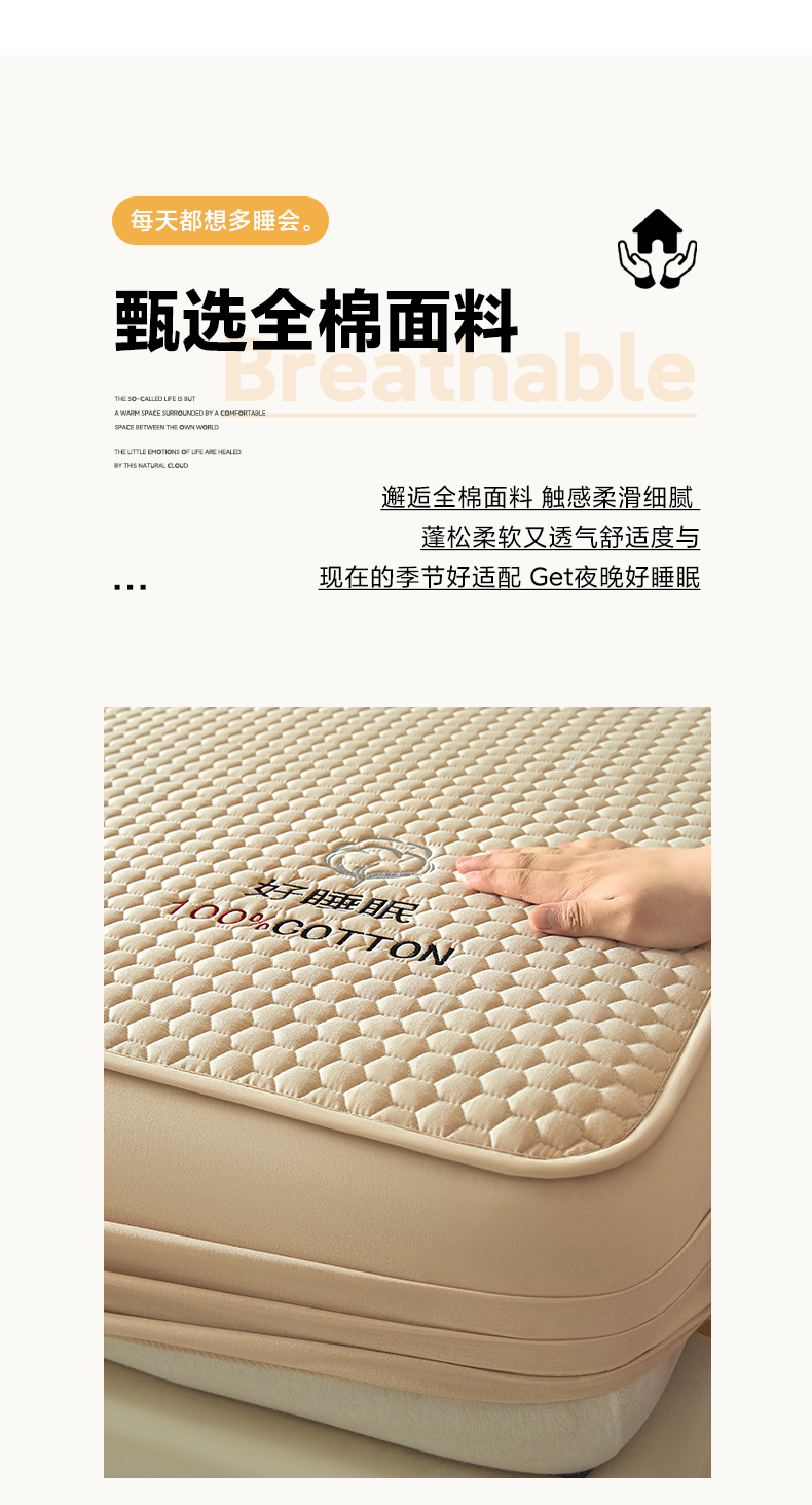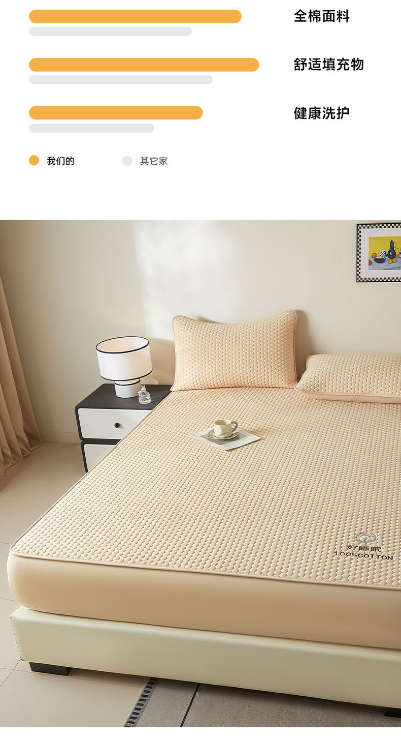 • 91家纺网 家纺一手货源 找家纺 芬晴家纺 2025新款A类好睡眠全棉夹棉系列床笠 好睡眠-浅卡
