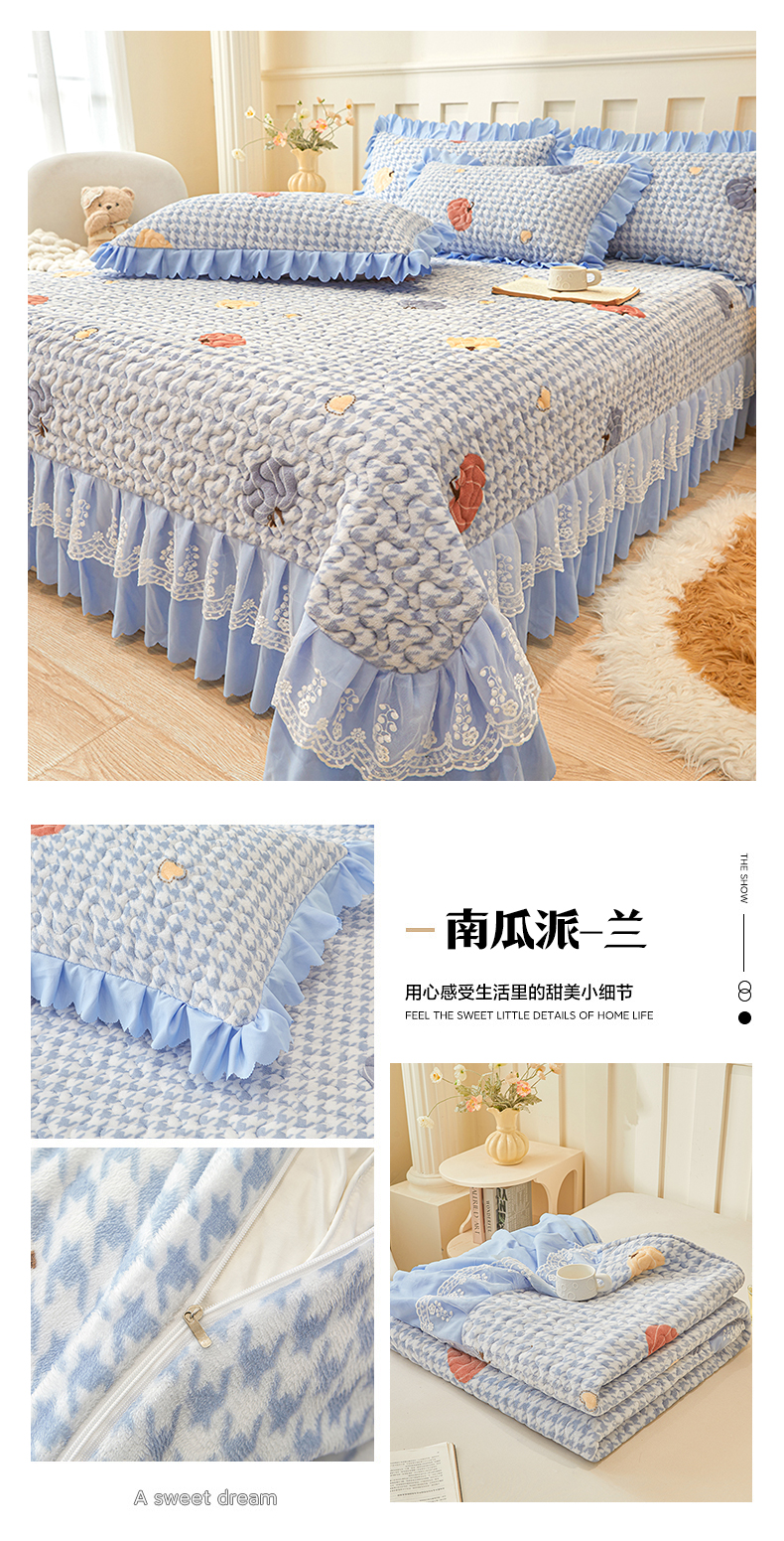 当前位置: 91家纺网 > 商品网购 > 床品套件 > 三件套 > 艾裙海 2025新款蕾丝边牛奶绒床盖三件套 米奇妹妹