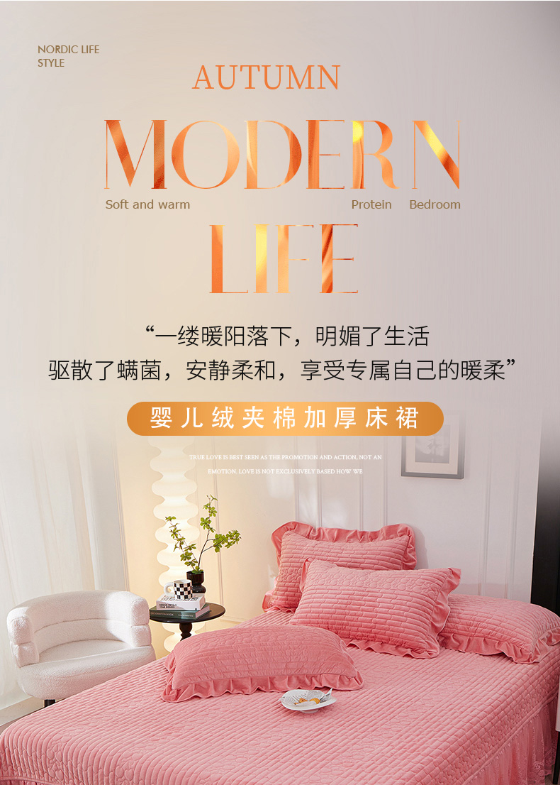 (总)程百万家纺 2025新款A类婴儿绒夹棉加厚床裙床盖,桃粉,宝蓝,大红,豆沙,橘黄,浅灰,紫色