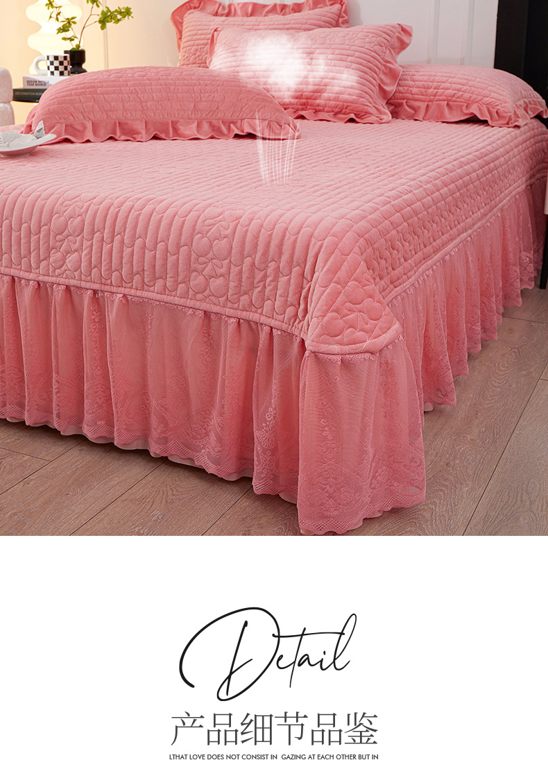 (总)程百万家纺 2025新款素色婴儿绒蕾丝床盖牛奶绒加厚床盖,粉色,橙色,大红,灰色,紫色
