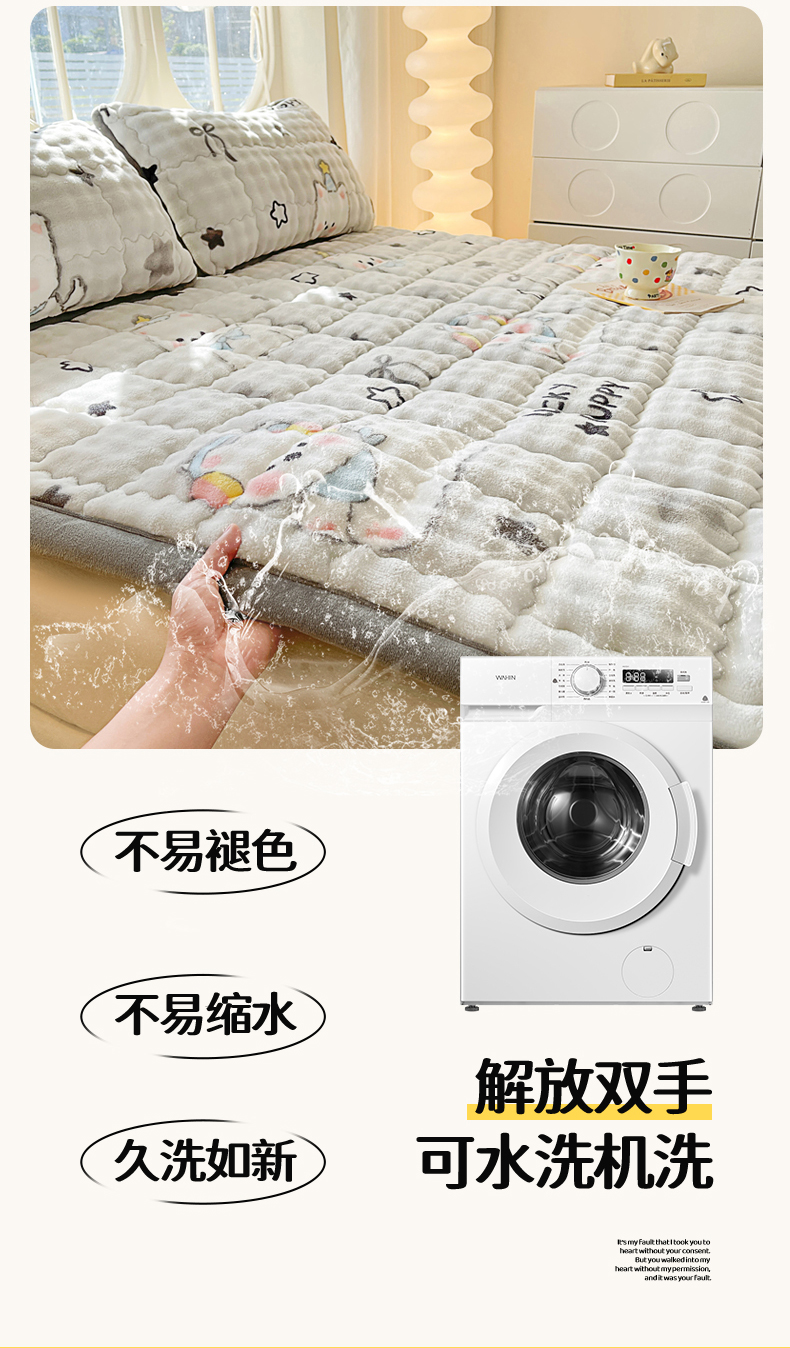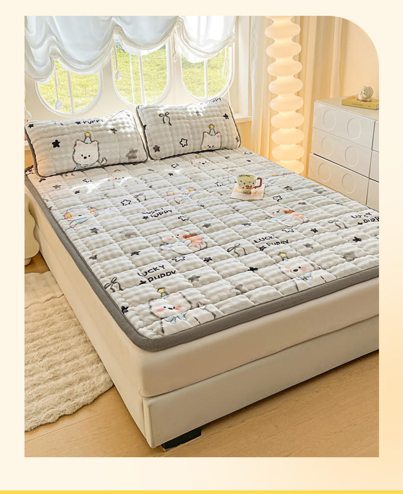(总)奇丝雅 2025新款A类牛奶绒泡泡绒床褥床垫床盖兔毛绒家用学生宿舍上下铺寝室褥子软垫床护垫夹棉(大床)场景二,星星猫咪,月亮湾,趴趴狗,繁星,爱心咖,樱桃猫咪,幻影灰,暖绒蓝,清新绿,柔和蓝