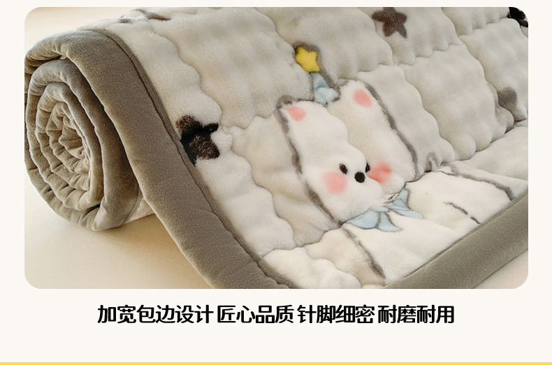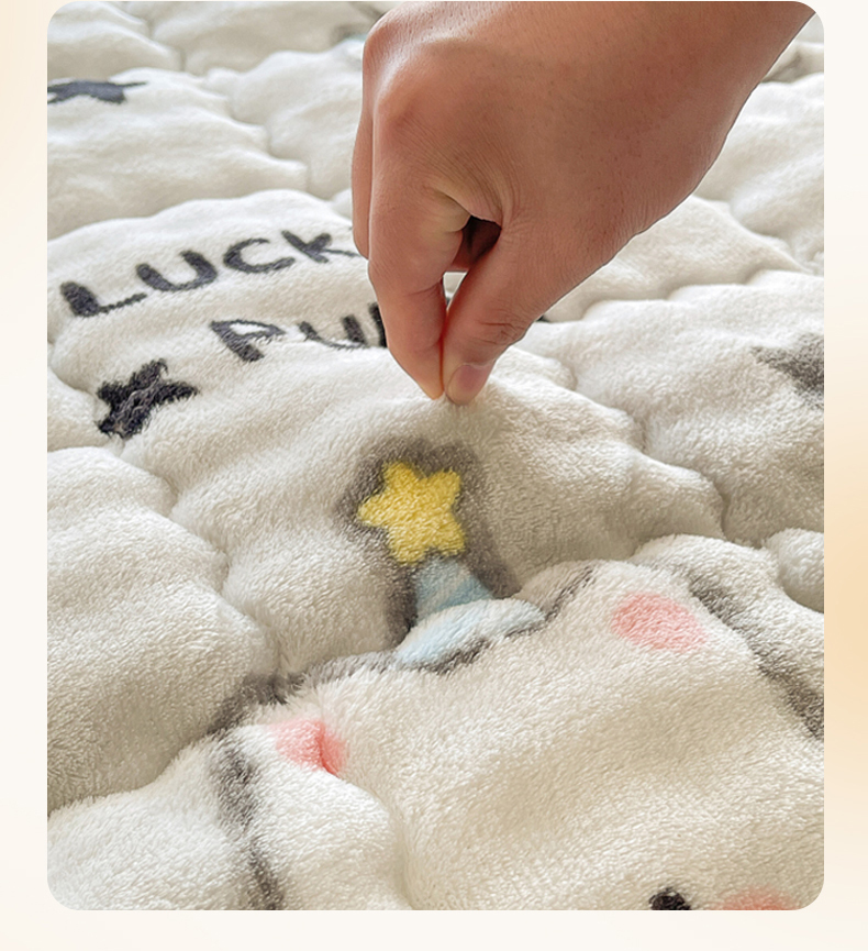 商品名称:奇丝雅 2025新款A类牛奶绒泡泡绒床褥床垫床盖兔毛绒家用学生宿舍上下铺寝室褥子软垫床护垫夹棉(大床) 星星猫咪