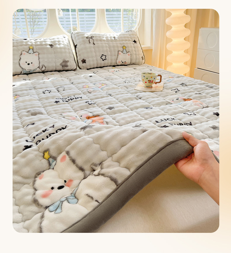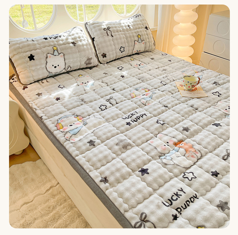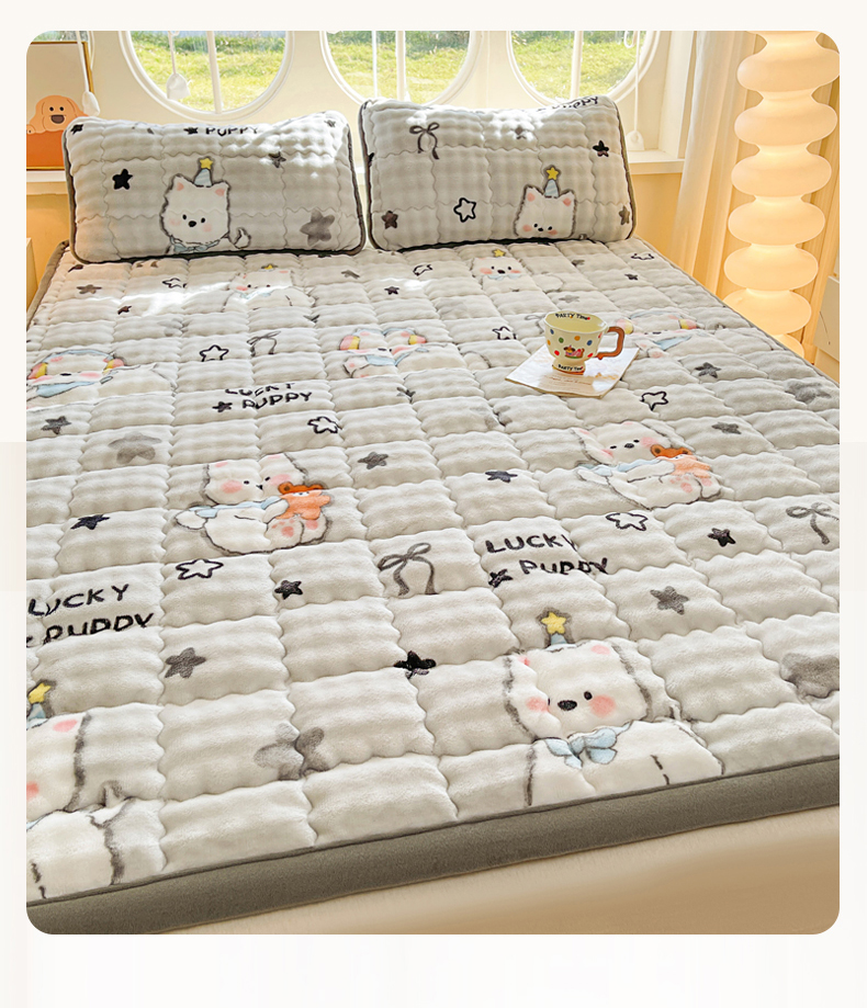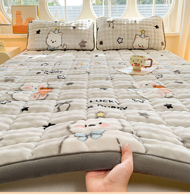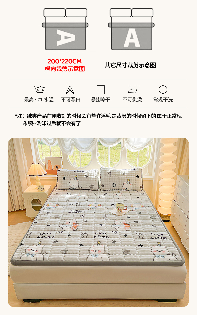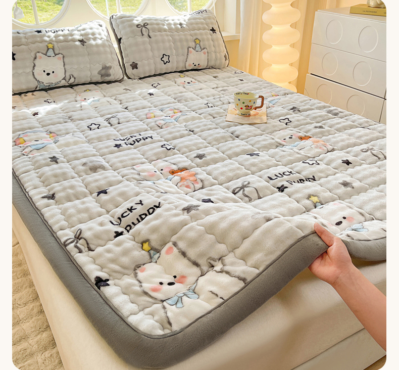 (总)奇丝雅 2025新款A类牛奶绒泡泡绒床褥床垫床盖兔毛绒家用学生宿舍上下铺寝室褥子软垫床护垫夹棉(大床),星星猫咪,爱心咖,繁星,幻影灰,暖绒蓝,趴趴狗,清新绿,柔和蓝,樱桃猫咪,月亮湾