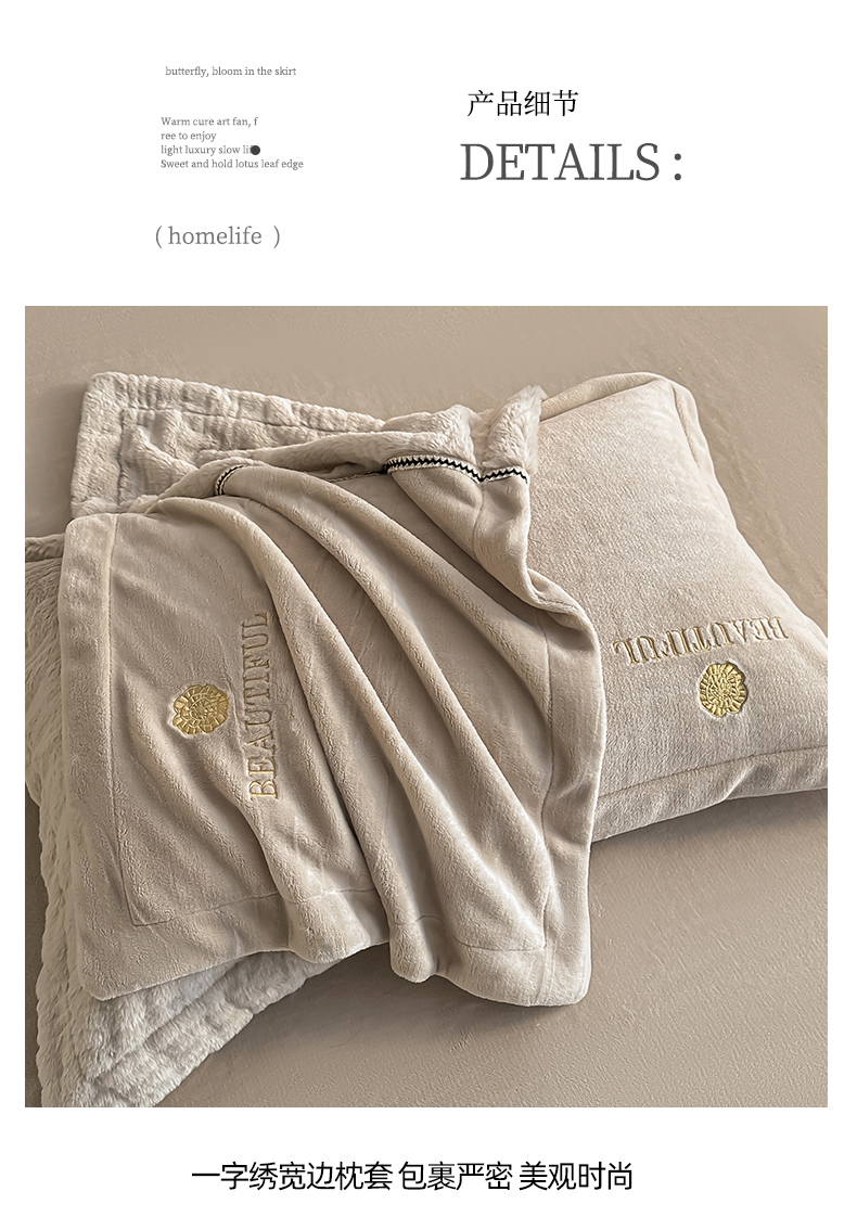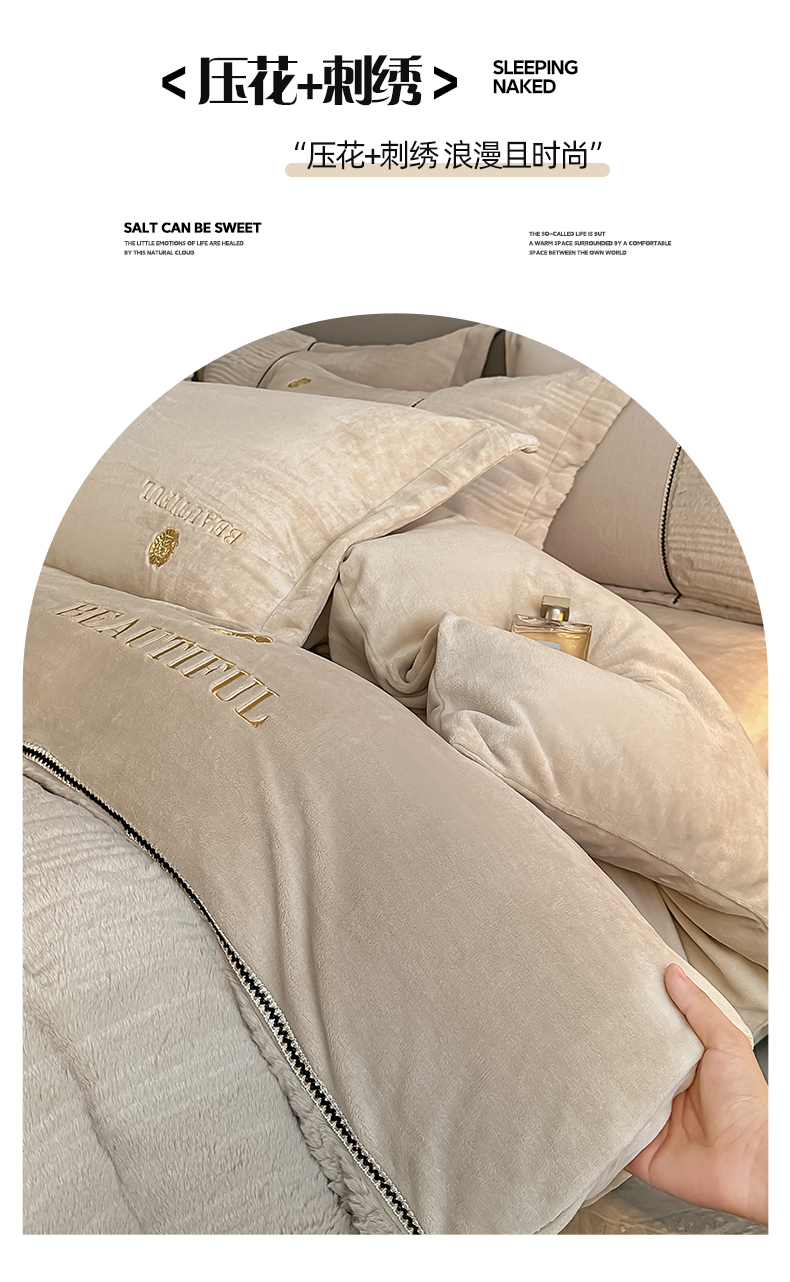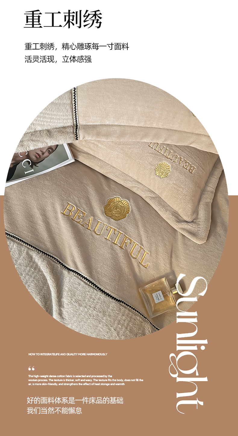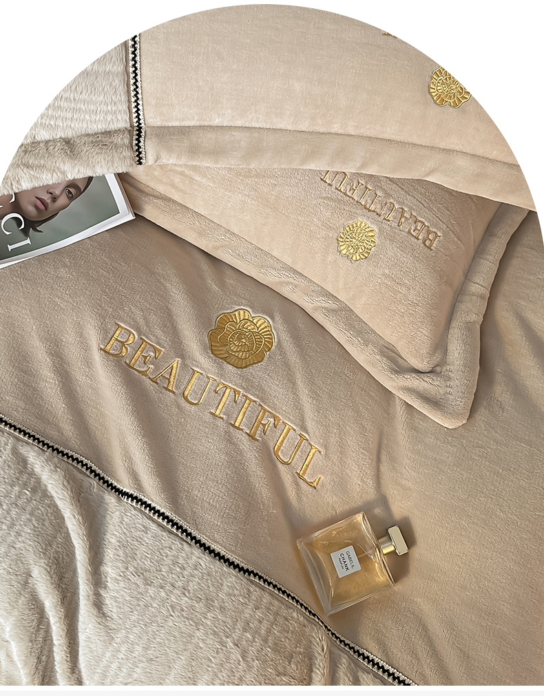 总金窝窝家纺2024重工刺绣280克A类婴儿牛奶绒刺绣四件套系列-美好生活,美好生活—粉