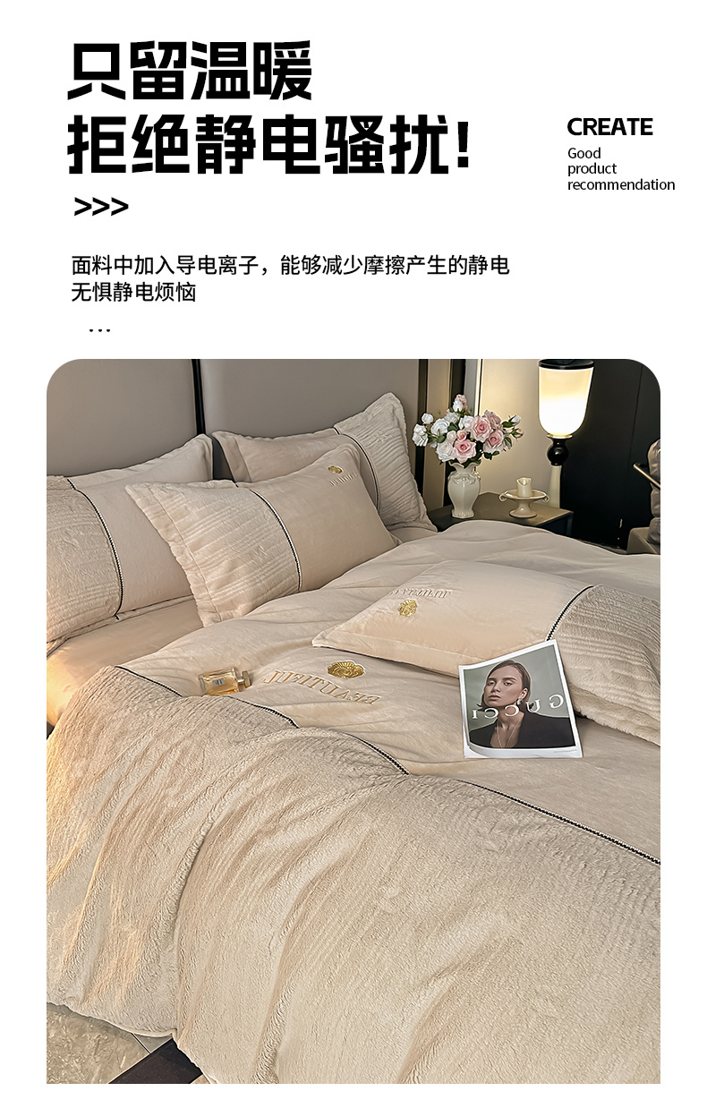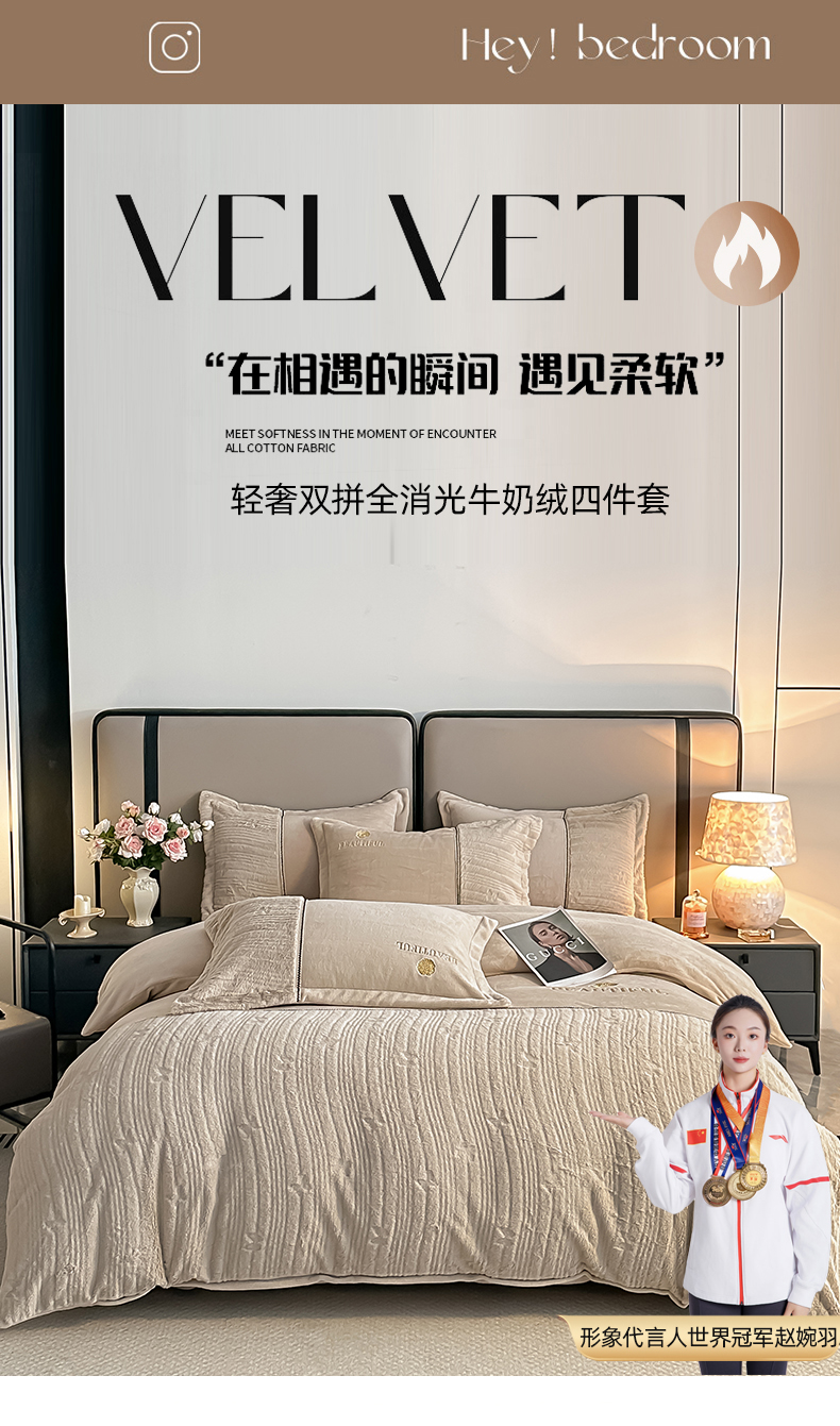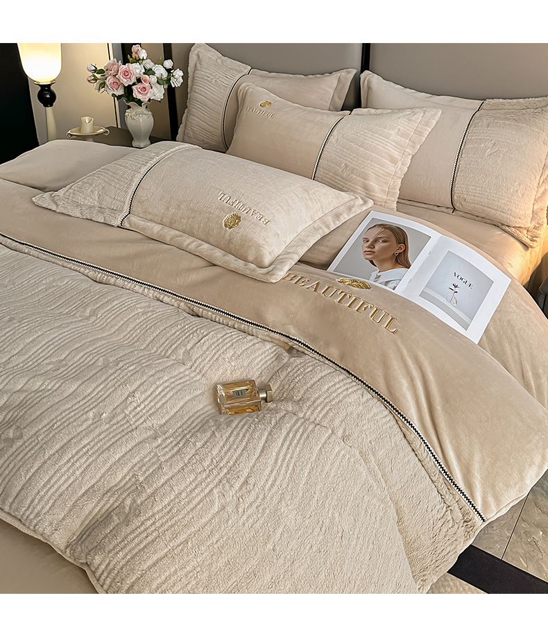 商品名称:金窝窝家纺 2025新款轻奢双拼全消光牛奶绒四件套-安娜 安娜-咖色