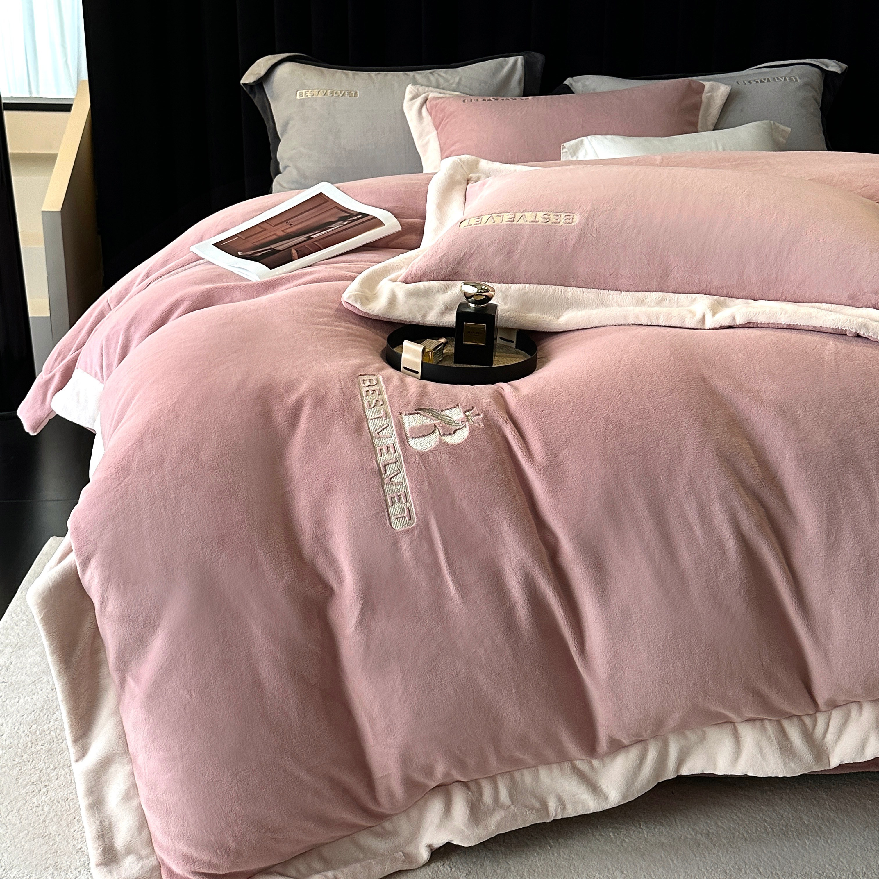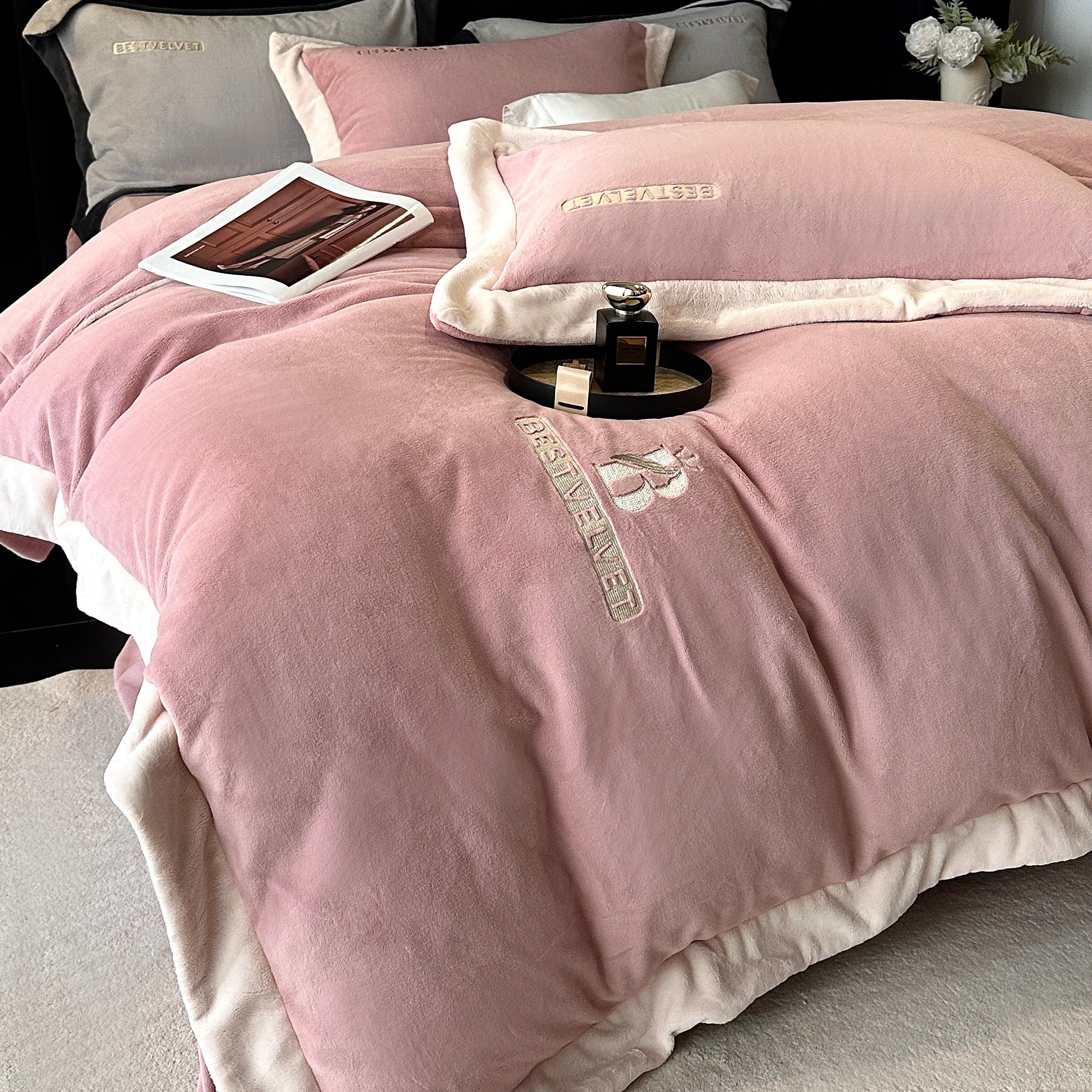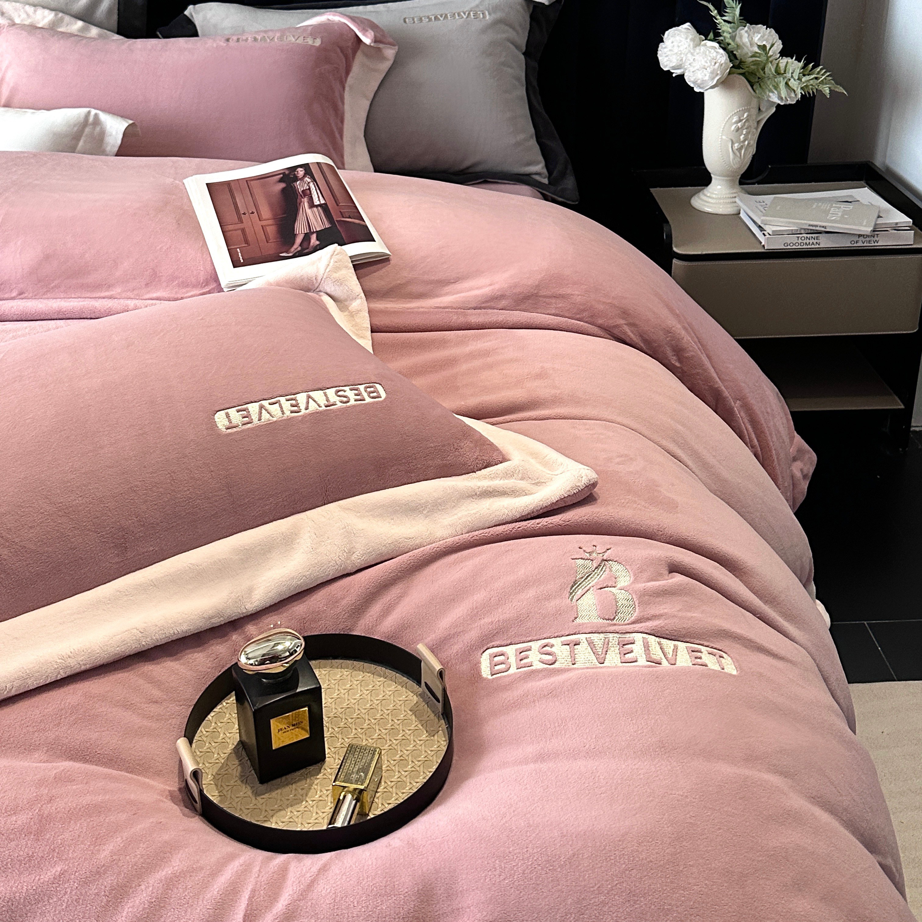 (总)南泉坊 2025新款230克全消光牛奶绒刺绣四件套