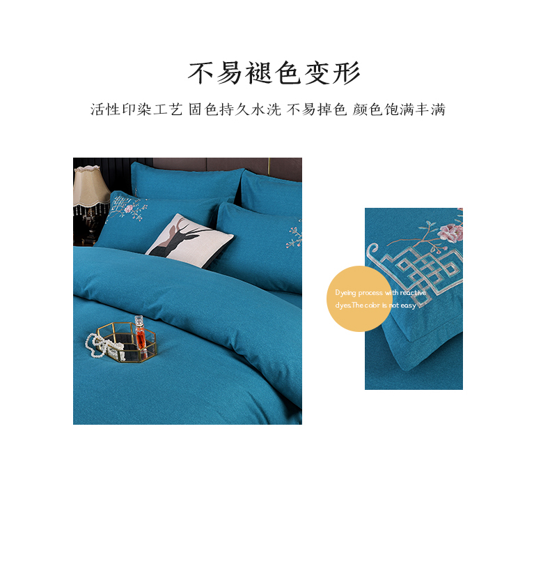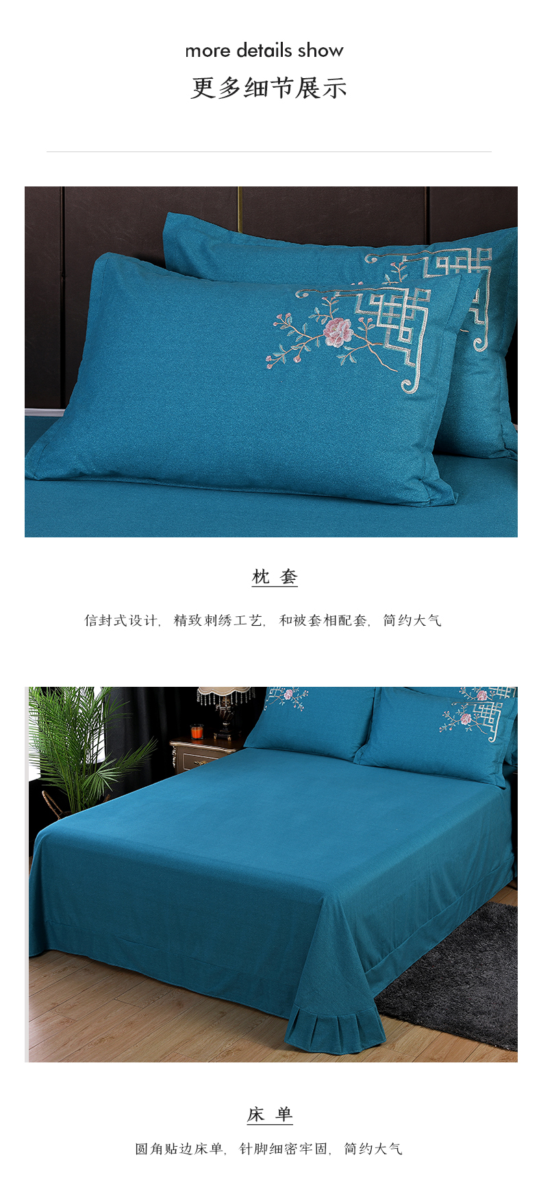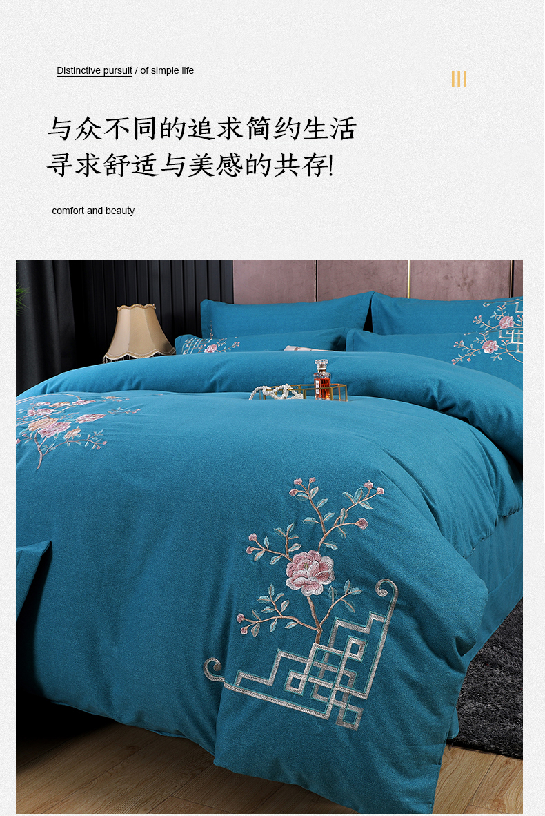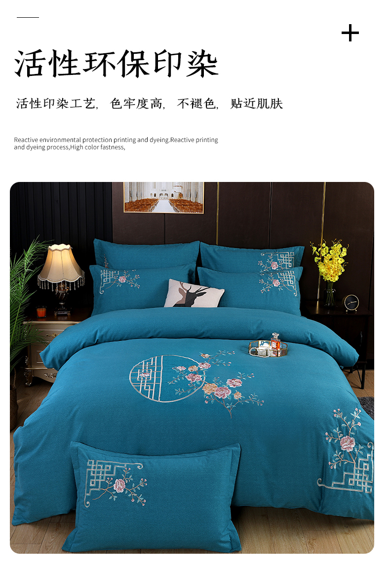 商品名称:浩情国际婚庆供货中心 2026新款秋冬60S高端全棉刺绣磨毛系列 花开满庭-贵族蓝