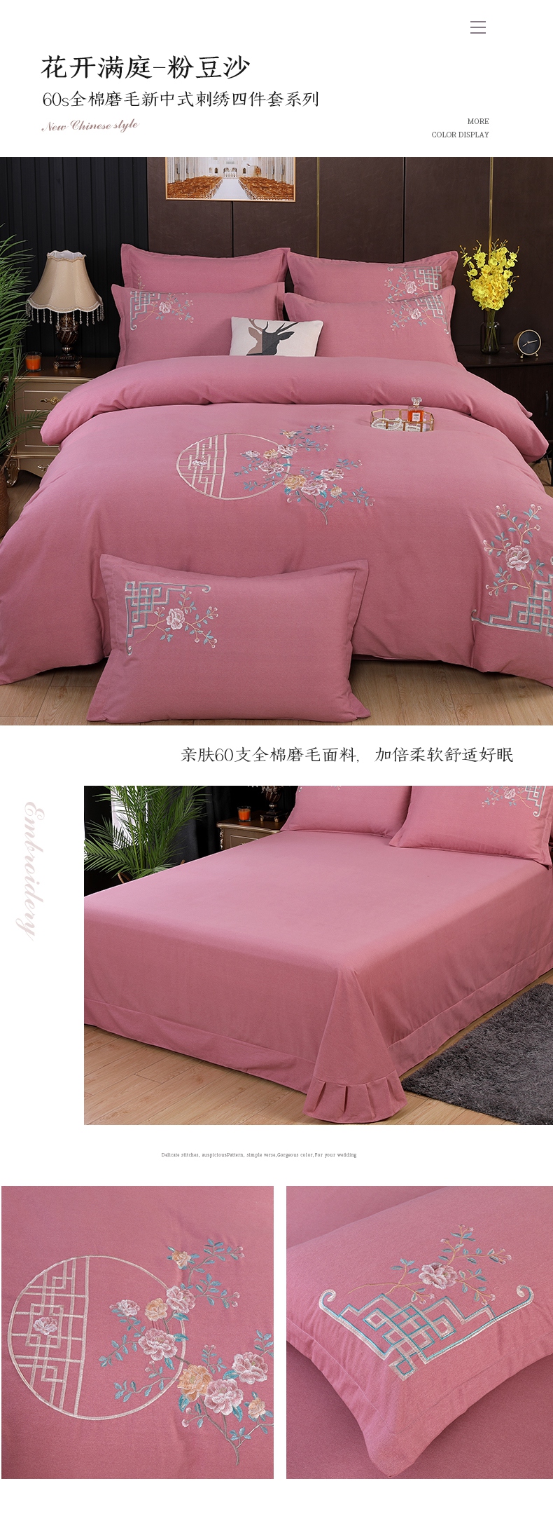 (总)浩情国际2026新款100S长绒棉高端刺绣四件套,花之曼-大红,花之曼-豆沙,花之曼-粉玉,花之曼-灰豆绿,花之曼-孔雀绿,花之曼-兰灰,花之曼-驼色,花之曼-紫豆沙