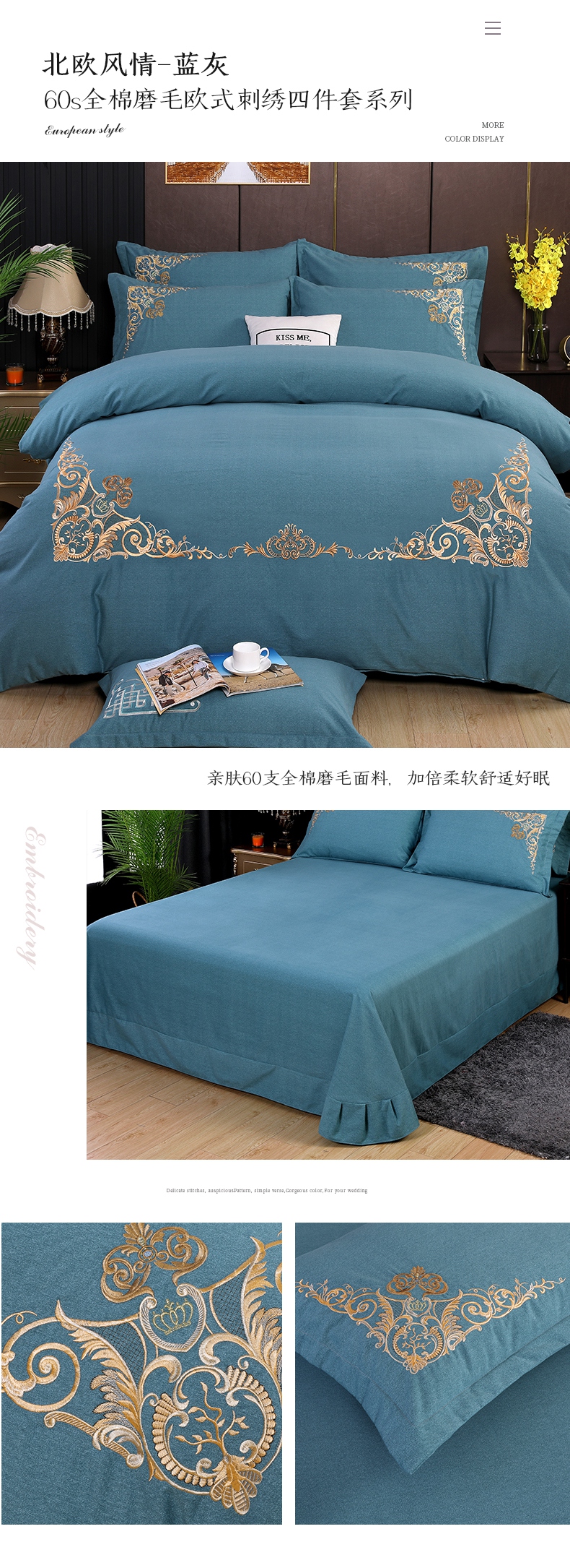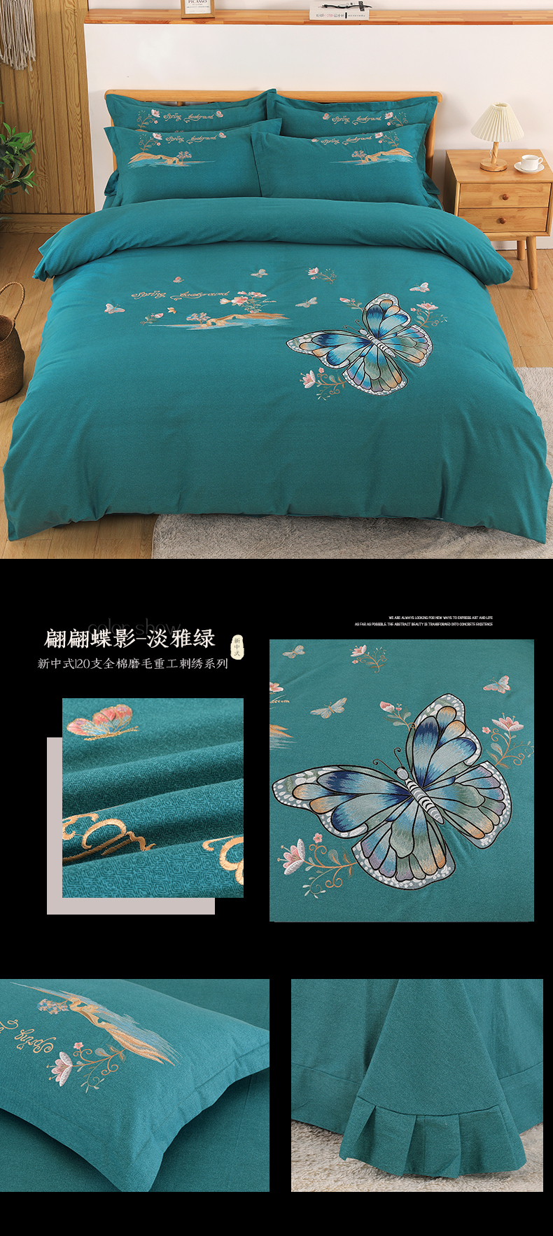 (总)2026秋冬新品全棉磨毛刺绣120支四件套系列-玫瑰庄园,玫瑰庄园-碧水兰,玫瑰庄园-豆沙,玫瑰庄园-桂花玉,玫瑰庄园-米驼,玫瑰庄园-墨绿,玫瑰庄园-优雅灰