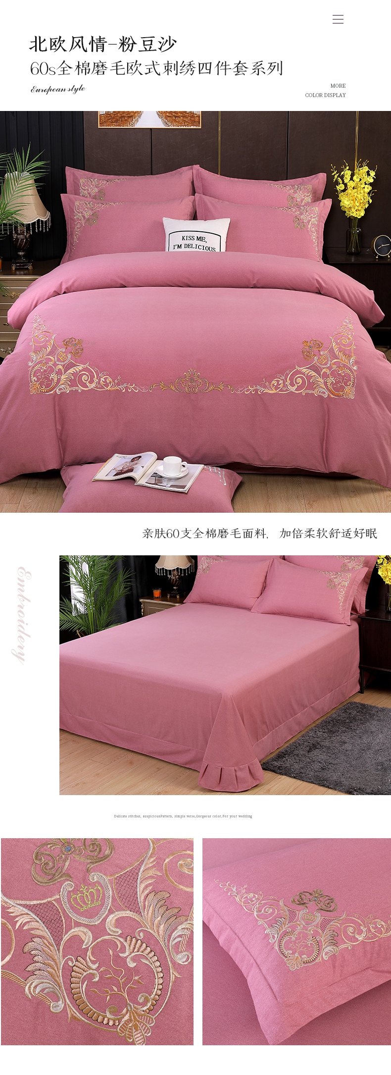(总)浩情国际2026新款全棉100支欧式高端刺绣系列四件套,欧典-大红,欧典-粉豆沙,欧典-粉玉,欧典-蓝灰,欧典-米驼,欧典-紫豆沙