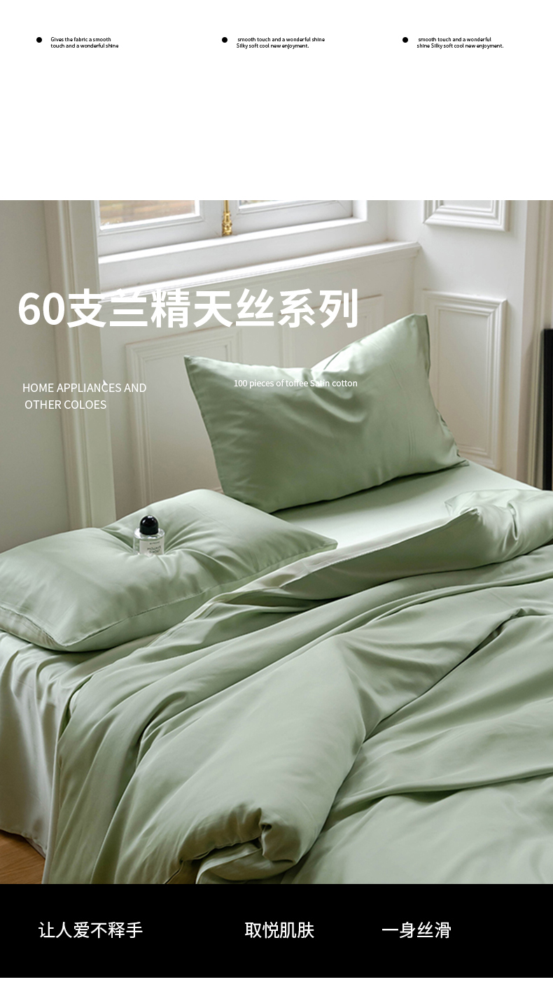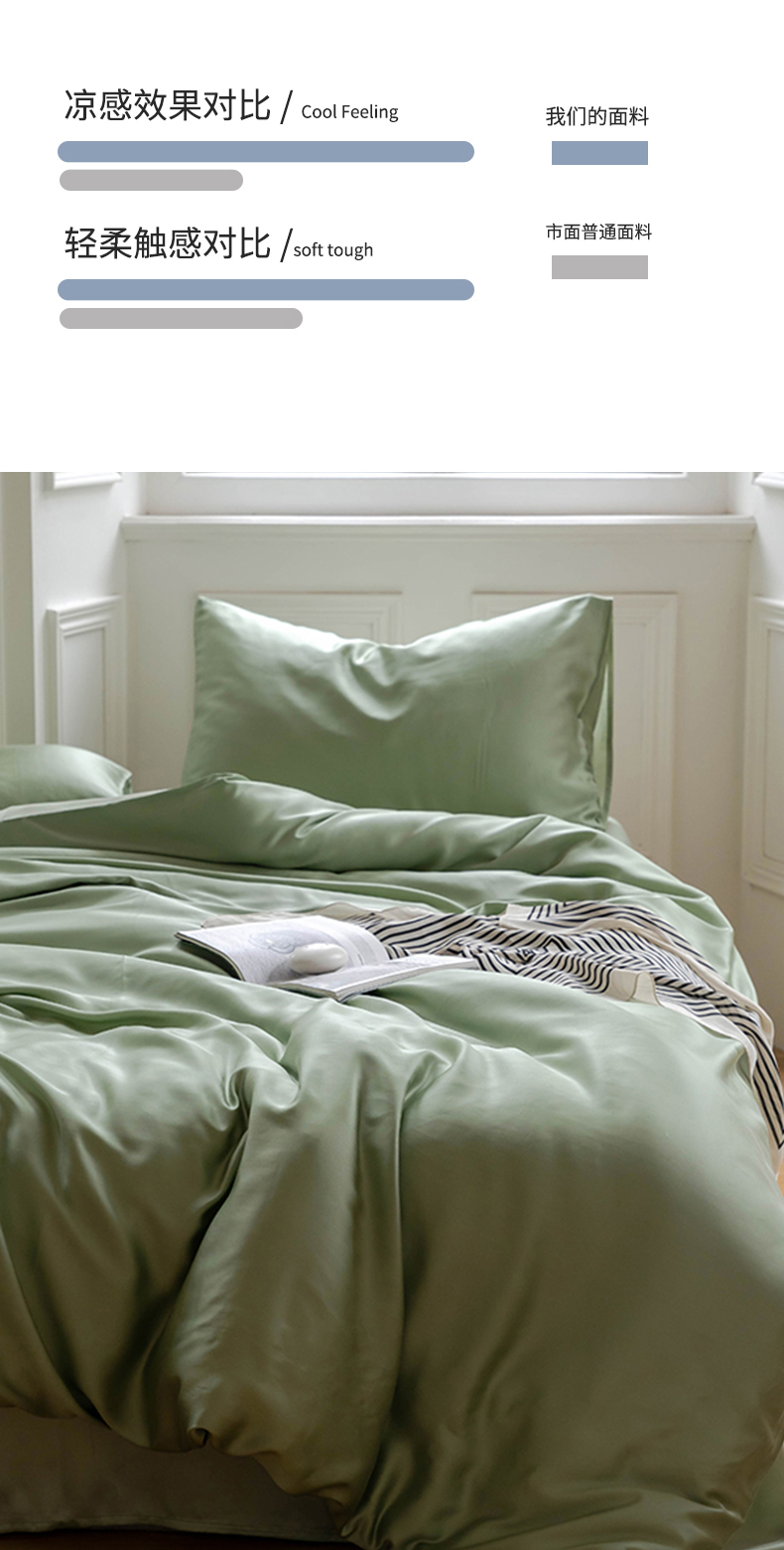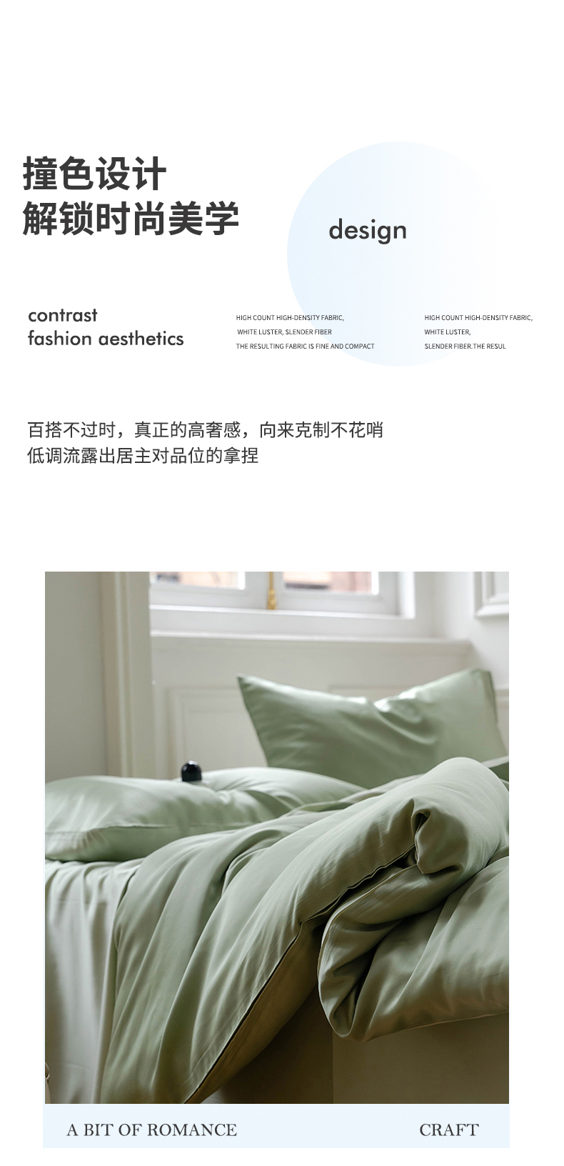 商品名称:浩情国际婚庆供货中心 2026新款60支奥地利兰精天丝纯色双拼系列四件套 香奈绿-嫩叶绿