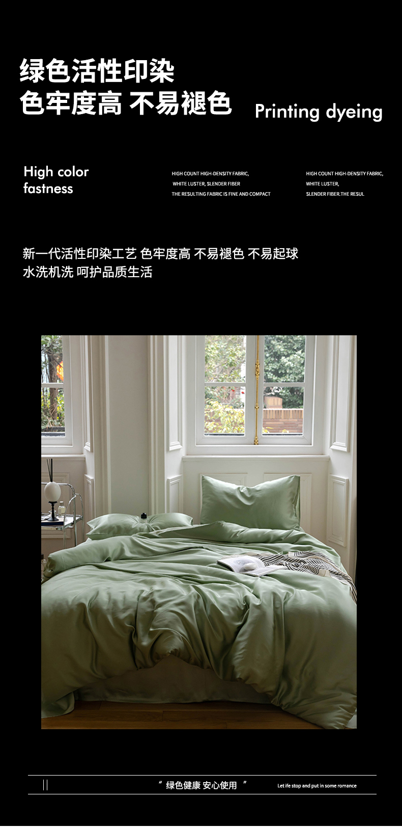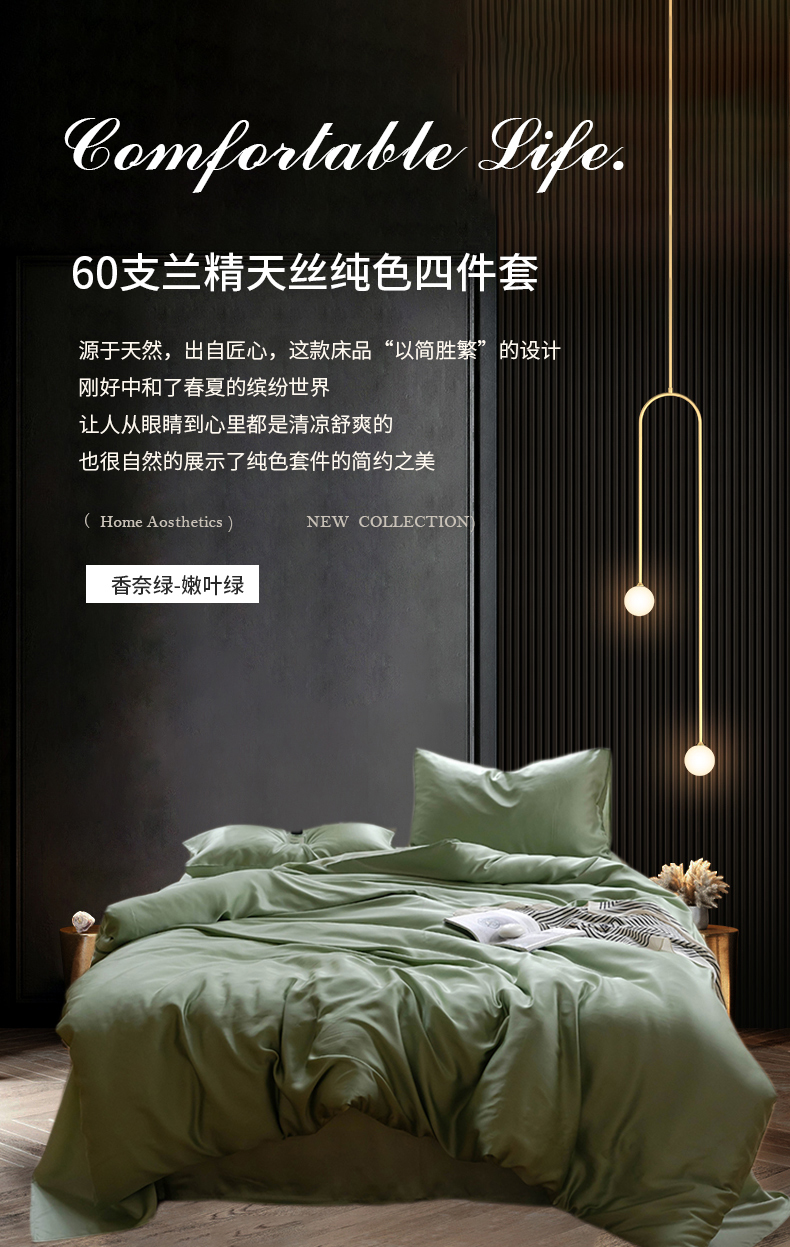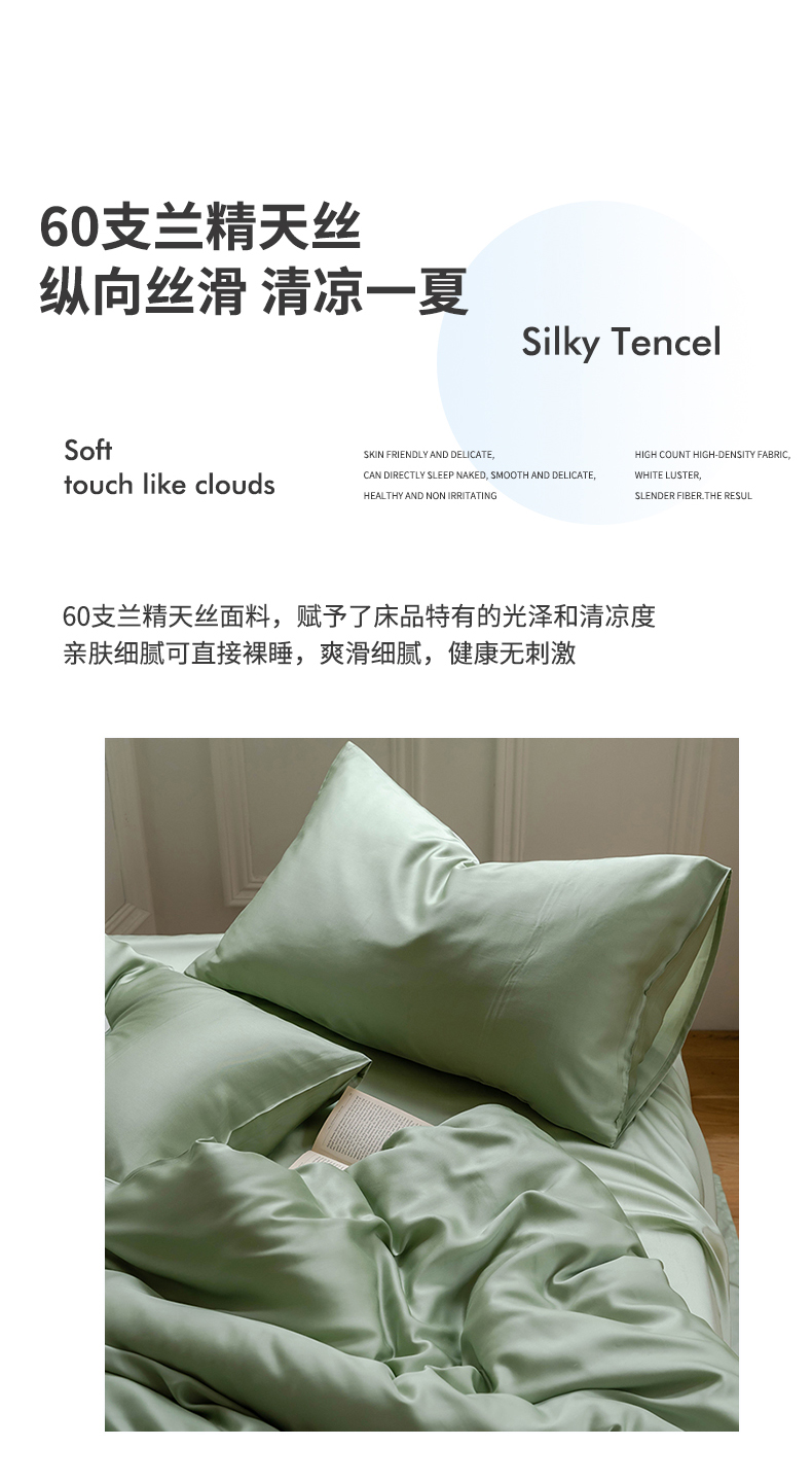 商品名称:浩情国际婚庆供货中心 2026新款60支奥地利兰精天丝纯色双拼系列四件套 香奈绿-嫩叶绿
