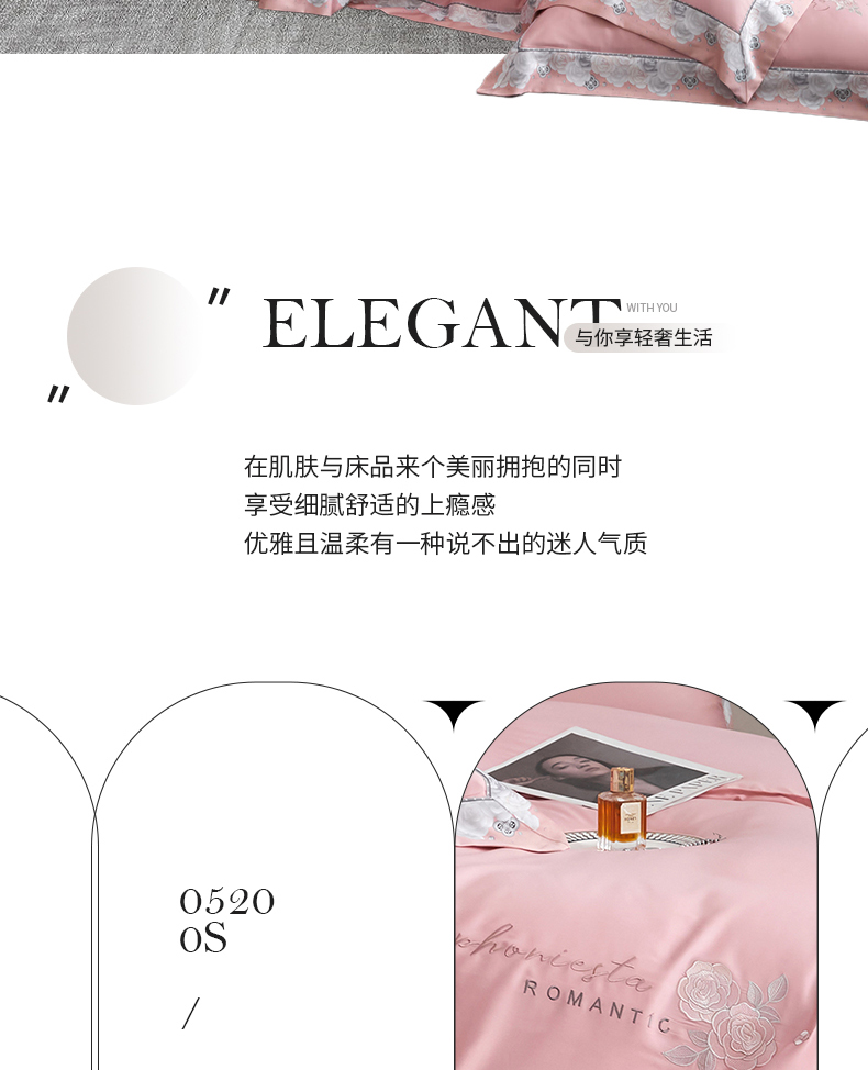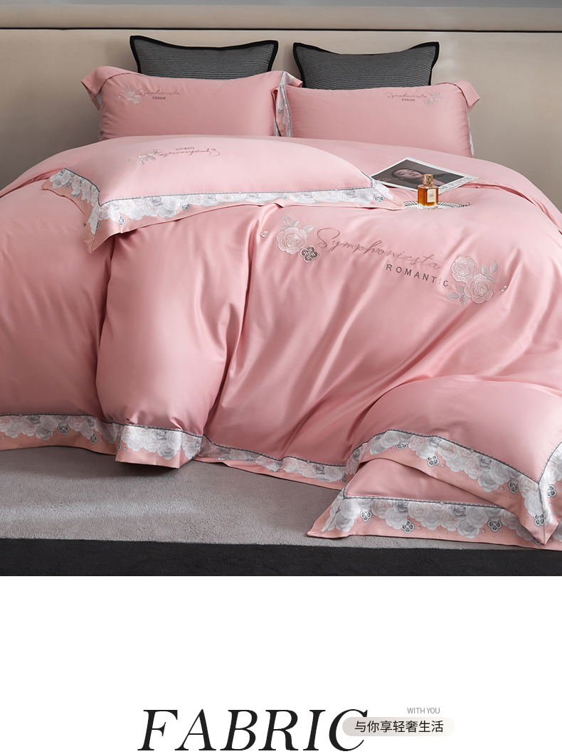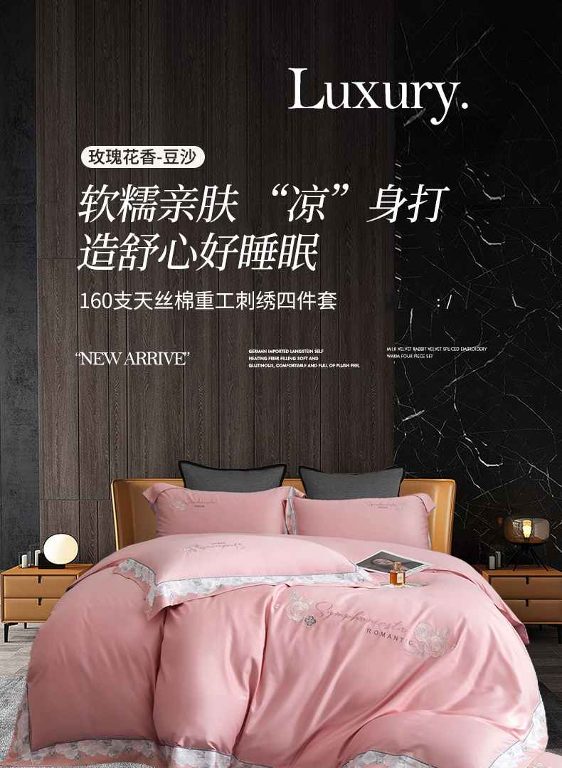 浩情国际婚庆供货中心 2026新款160S春夏天丝棉高端刺绣系列四件套 玫瑰花香-豆沙
