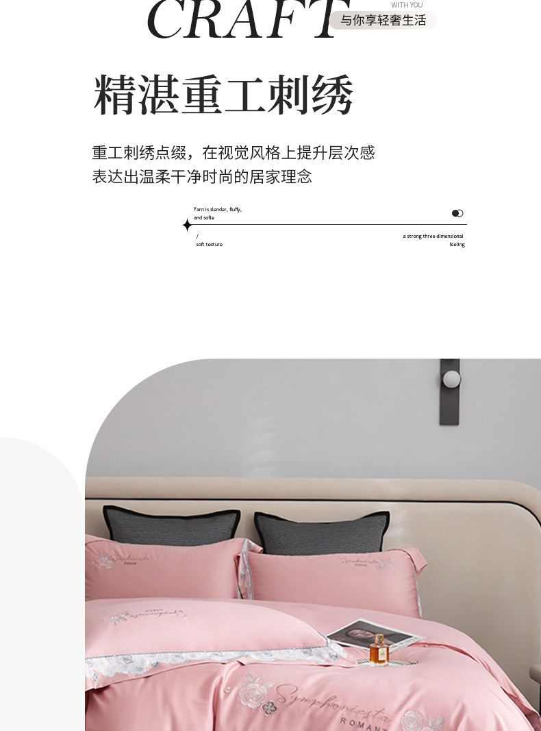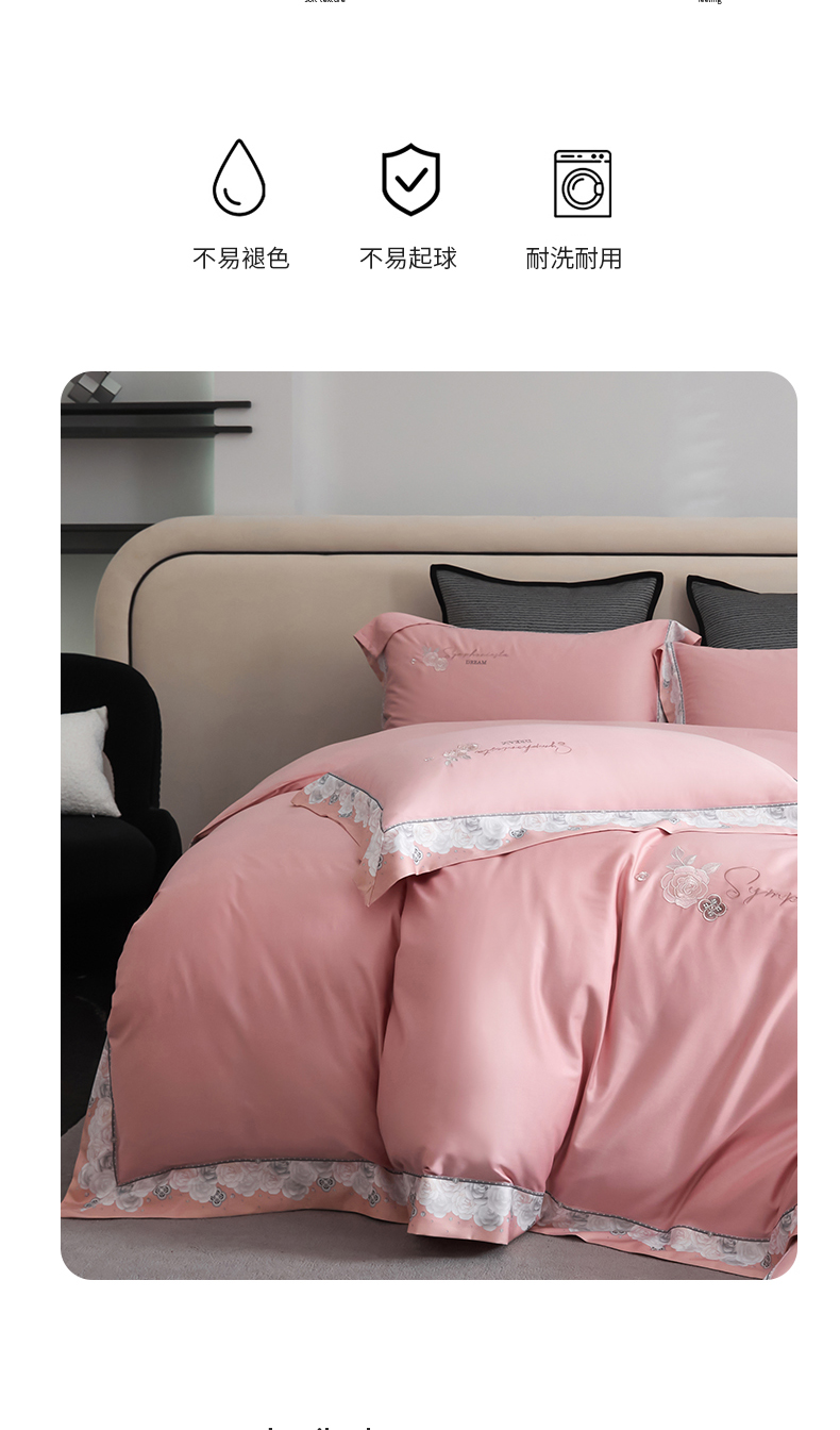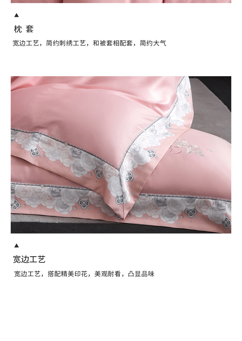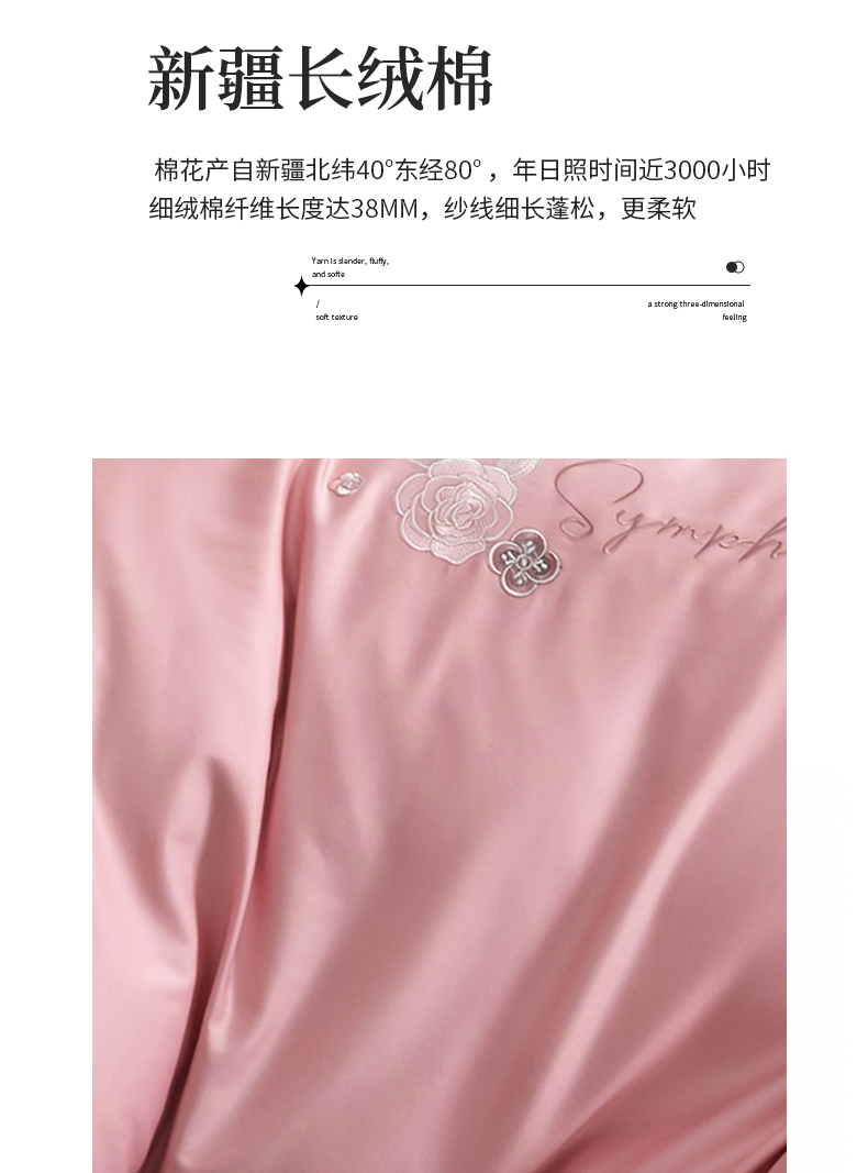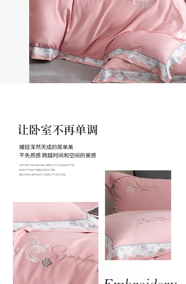 商品名称:浩情国际婚庆供货中心 2026新款160S春夏天丝棉高端刺绣系列四件套 玫瑰花香-豆沙