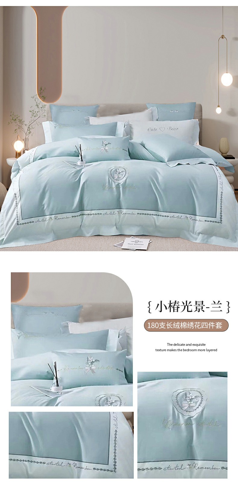 (总)浩情国际 2026四季款斜纹木棉绣花克拉恋人系列四件套,克拉恋人-时尚灰,克拉恋人-宾利蓝,克拉恋人-清水绿,克拉恋人-雅黛粉,克拉恋人-中国红