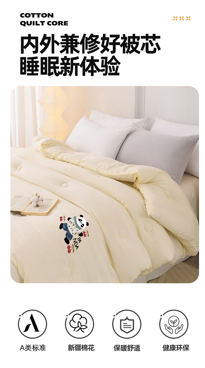 当前位置: 91家纺网 > 商品网购 > 被子 > 冬被 > 瑶瑶家居 2025新款熊猫棉花被被子被芯 浅灰