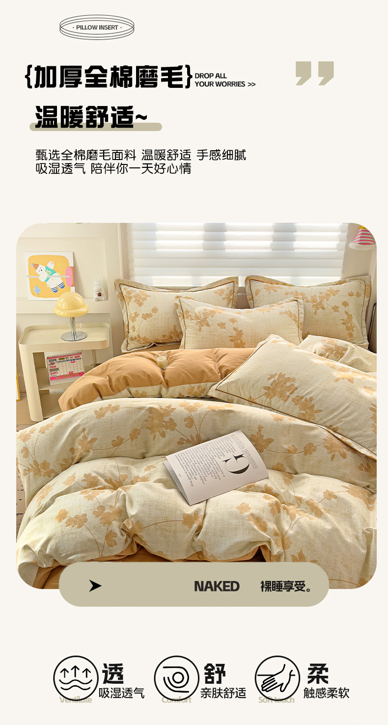 (总)曲之慕 2026新款全棉纯棉加厚喷气磨毛印花四件套,浅花悠悠,林见兔,波西米亚,花舞悠然,卡尼亚,克莱尔,米莱,米莱-兰,米莱-紫,向阳花开,南瓜屋,爱意浓,吾安心,登威熊,芬迪,花恬,花意,空间,晚秋,幽羽,费洛斯,浅香,秋叶,啬园,汀兰,云梦泽,艾格拉,蓝汐,蓝漾,萝莉,暖漾,绮梦,青枝语,秋韵,柔晖,絮语,紫韵,爱意花间,花蕊粉,四叶草,幽梦玉
