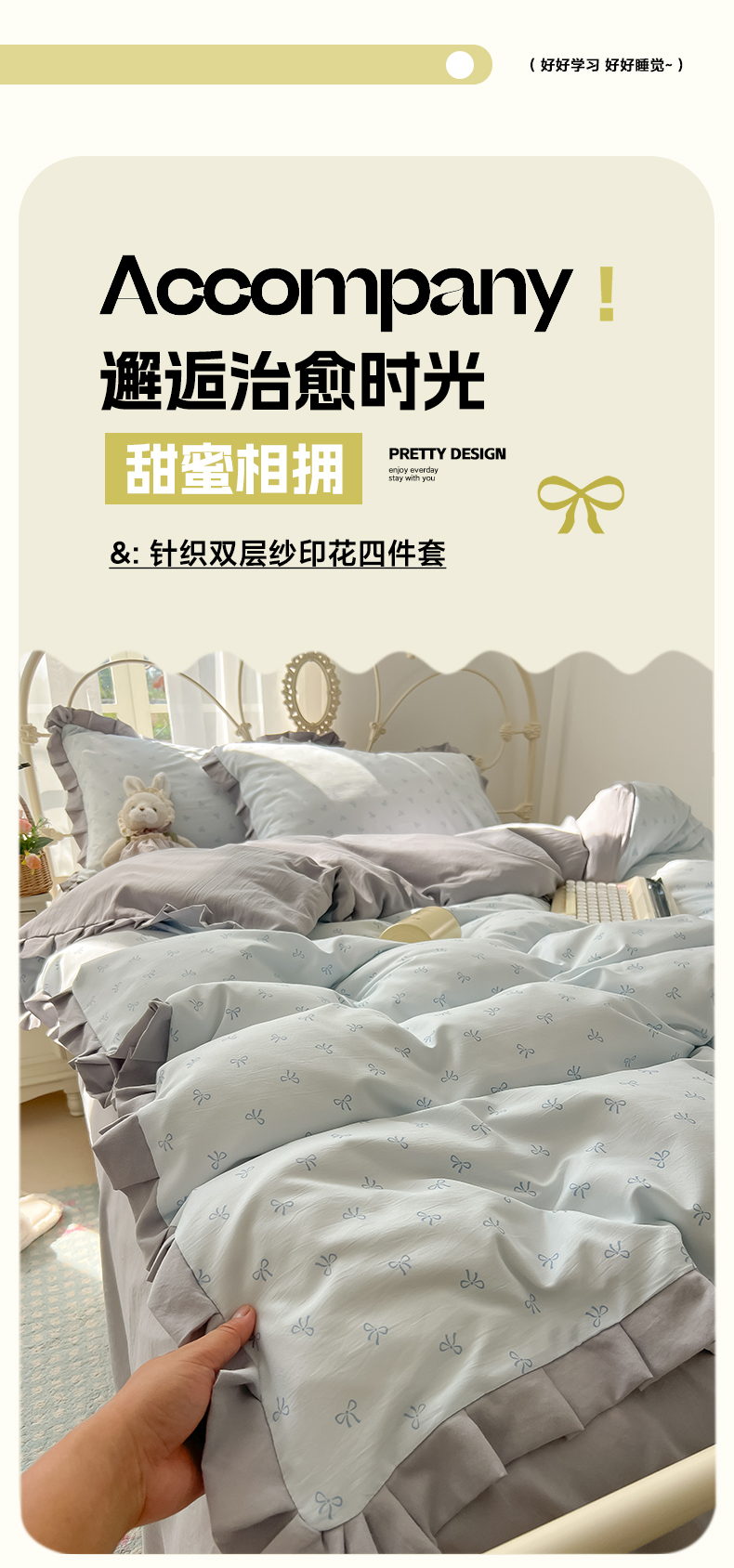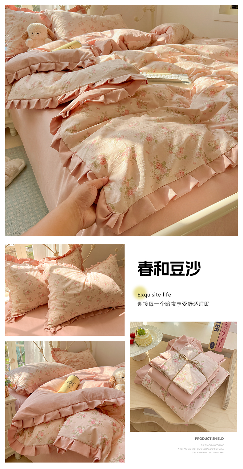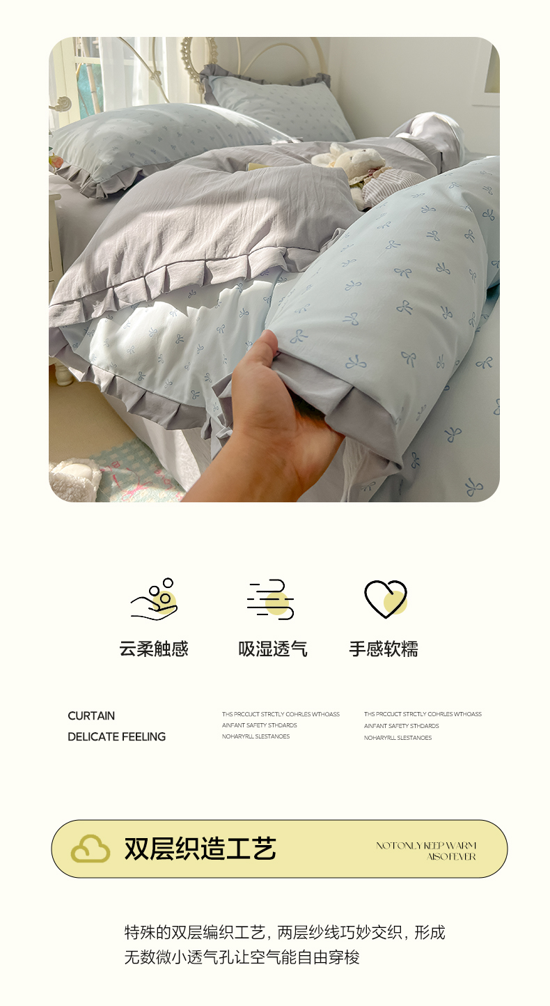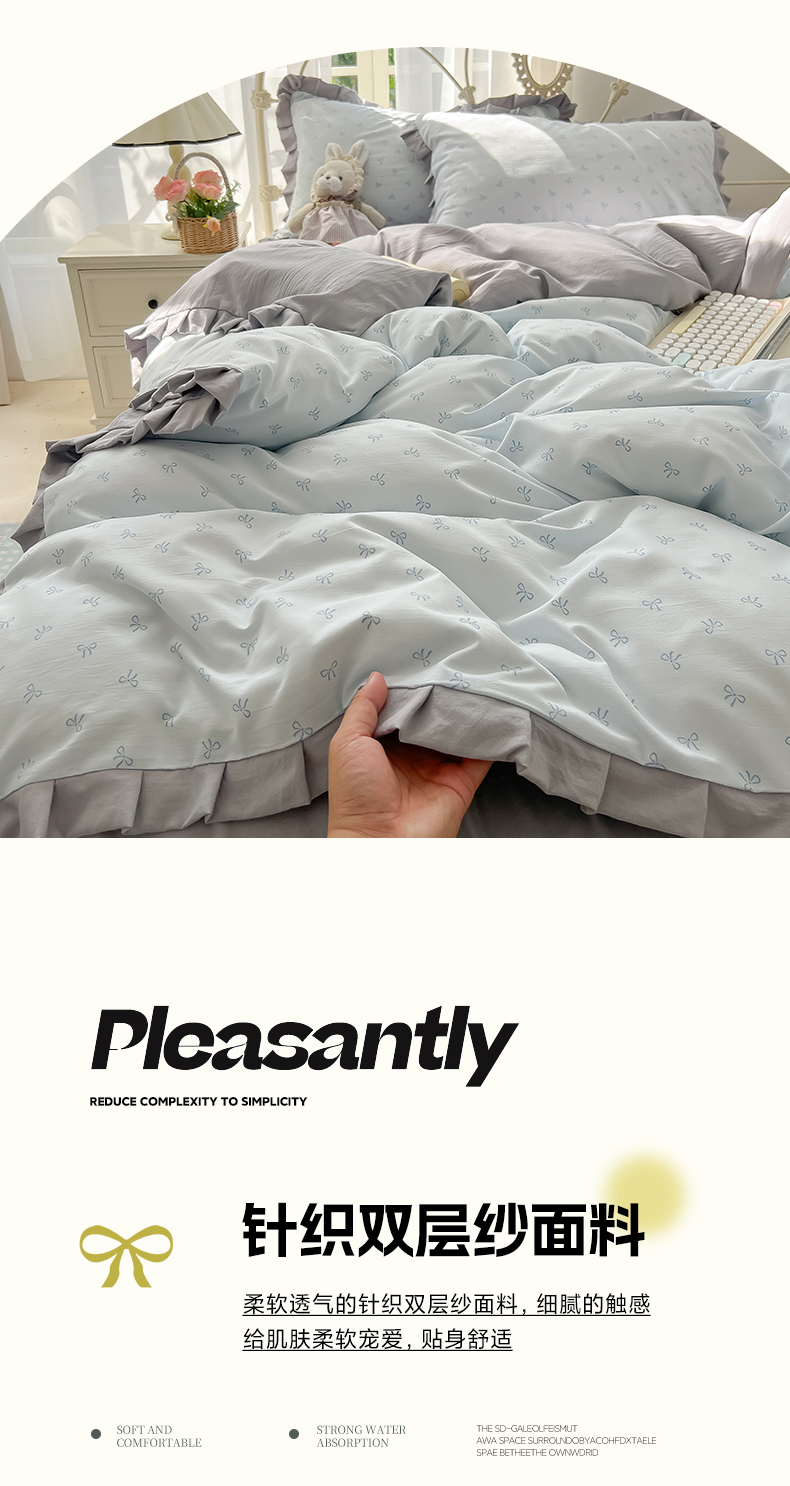 当前位置: 91家纺网 > 商品网购 > 床品套件 > 四件套 > 双层纱四件套 > 韩巢家纺 2026新款花边款针织双层纱四件套 可爱多兰