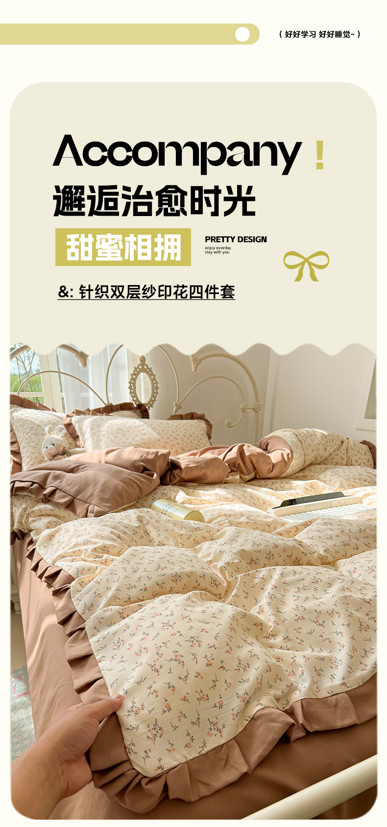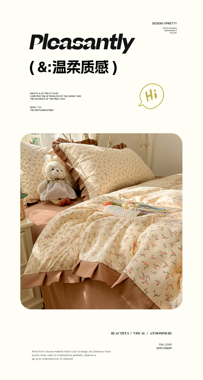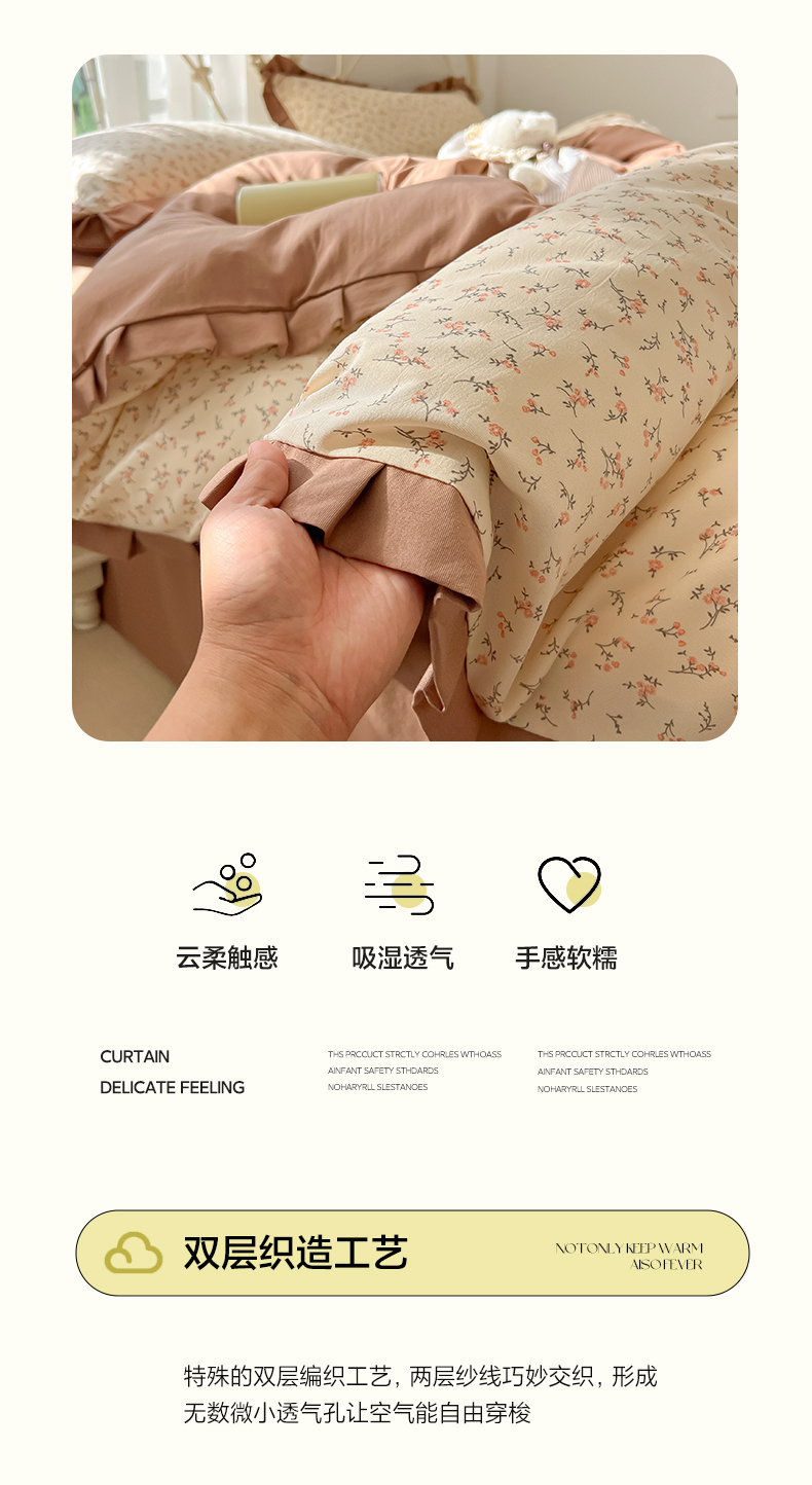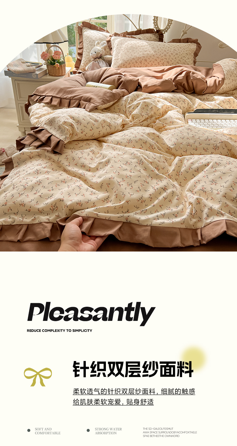当前位置: 91家纺网 > 商品网购 > 床品套件 > 四件套 > 双层纱四件套 > 韩巢家纺 2026新款花边款针织双层纱四件套 问秋黄