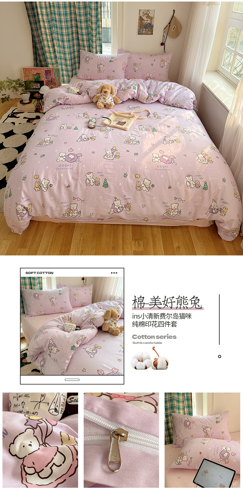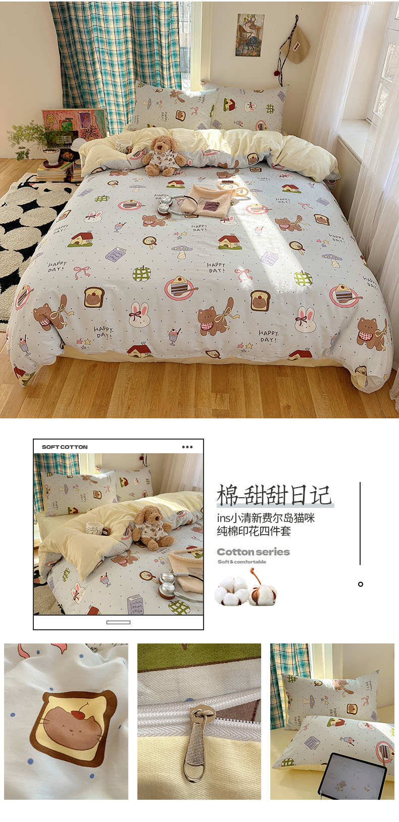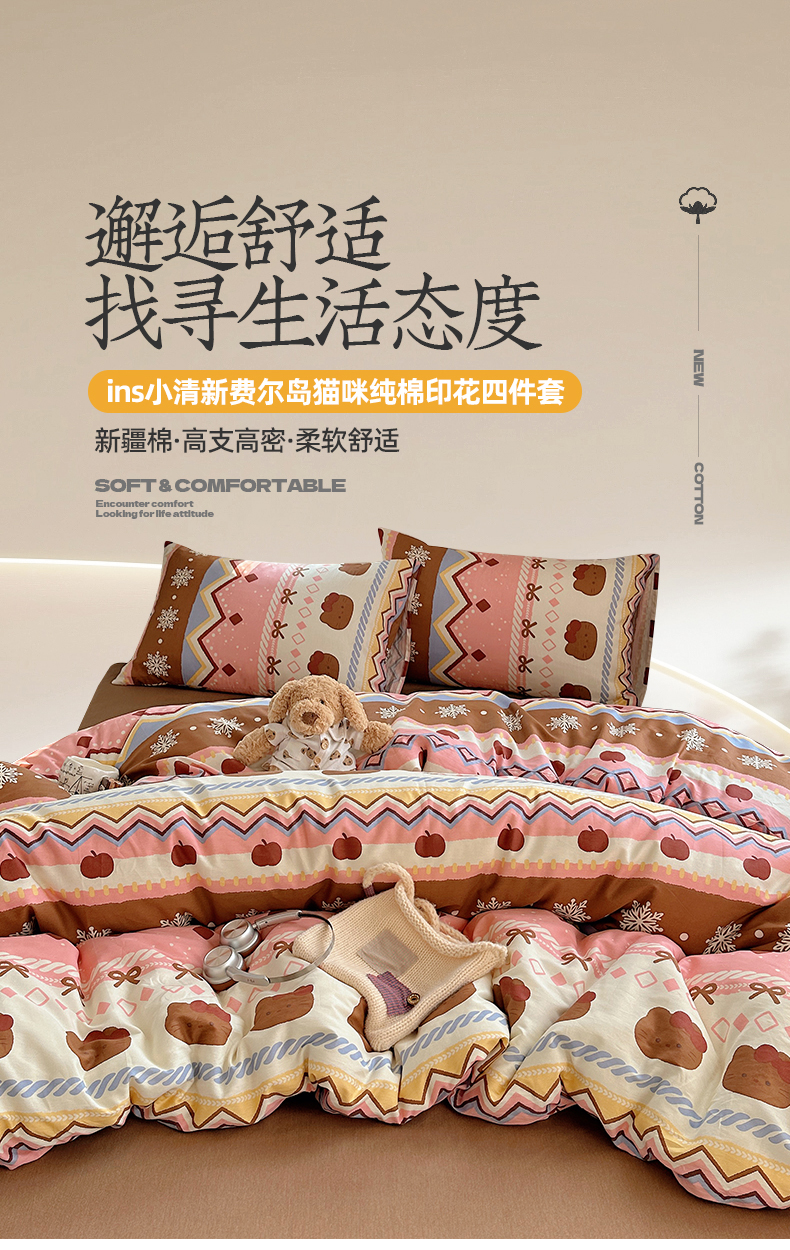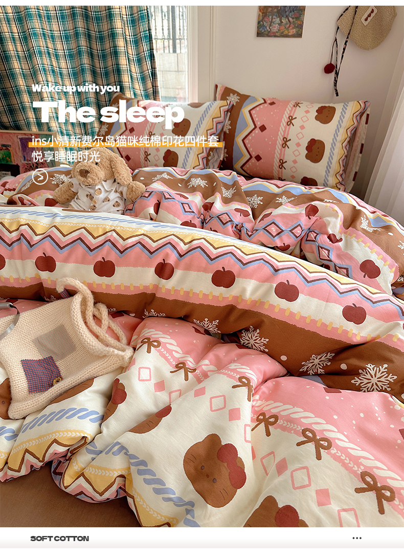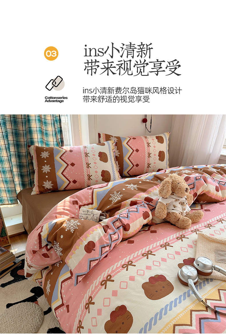当前位置: 91家纺网 > 商品网购 > 床品套件 > 四件套 > 全棉普通四件套 > 桃子家居 2026新款ins小清新费尔岛猫咪全棉纯棉印花四件套 棉-甜粉樱桃猫
