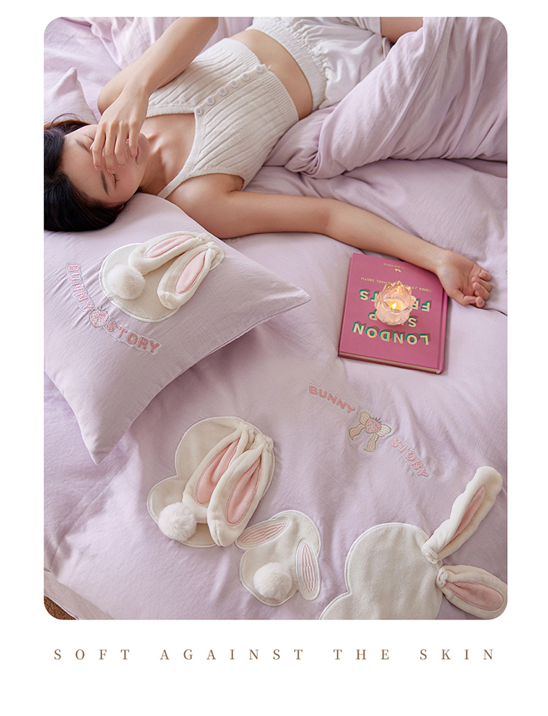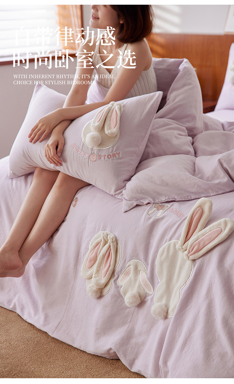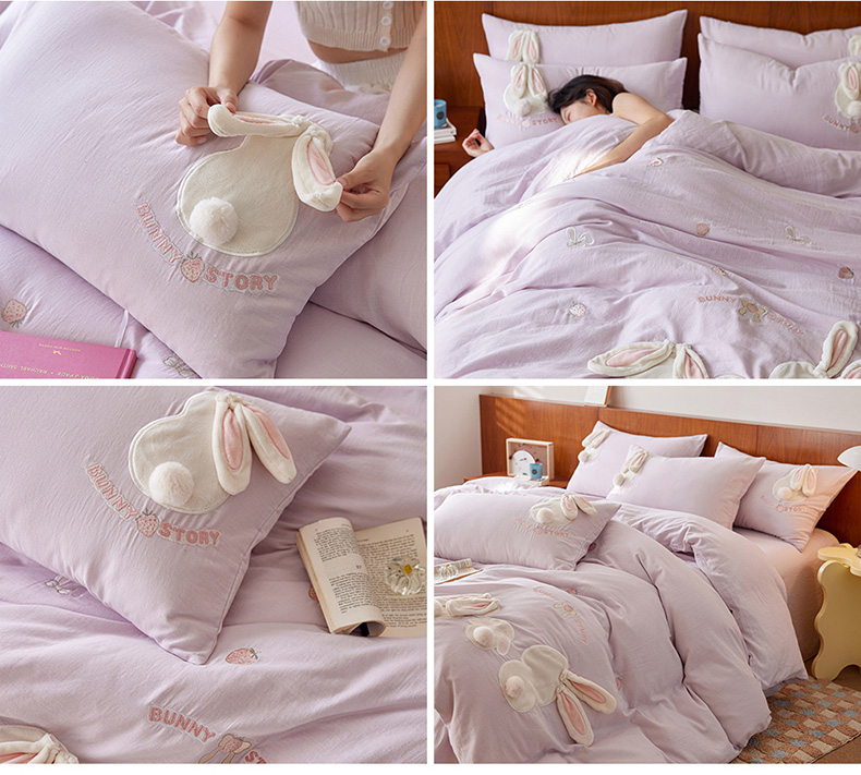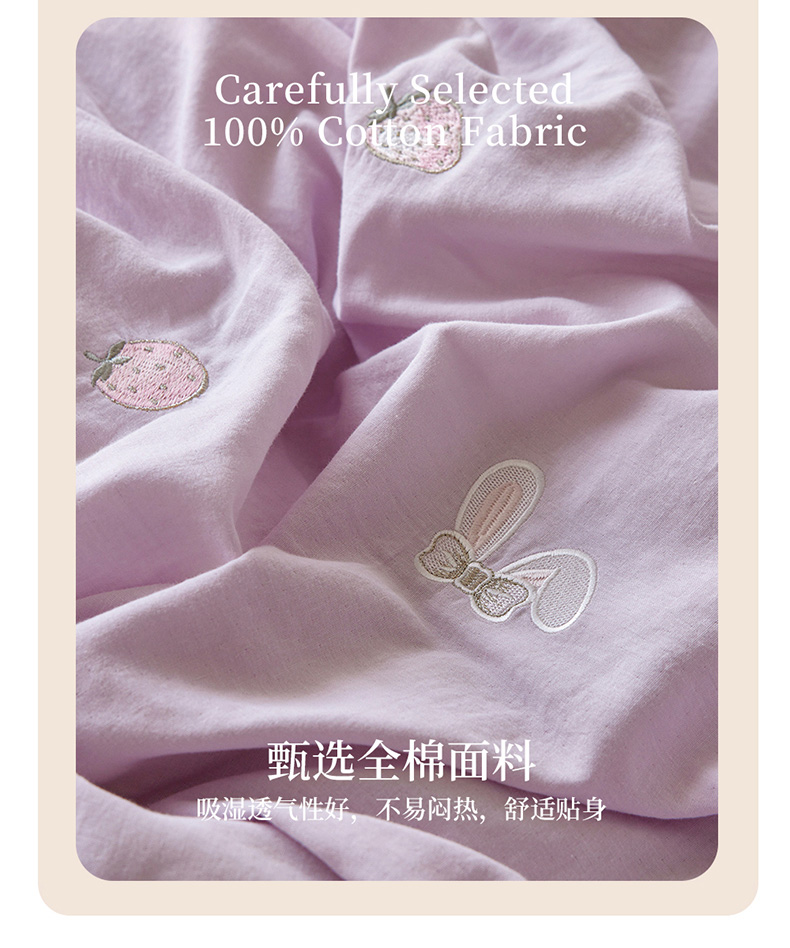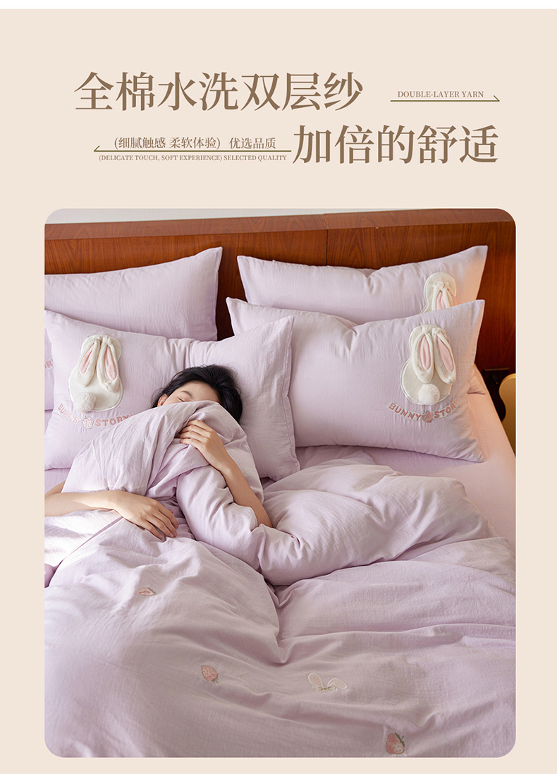 当前位置: 91家纺网 > 商品网购 > 床品套件 > 四件套 > 全棉普通四件套 > (总)爱缦 2025新款A类全棉水洗双层纱四件套-草莓兔系列(控价298起)