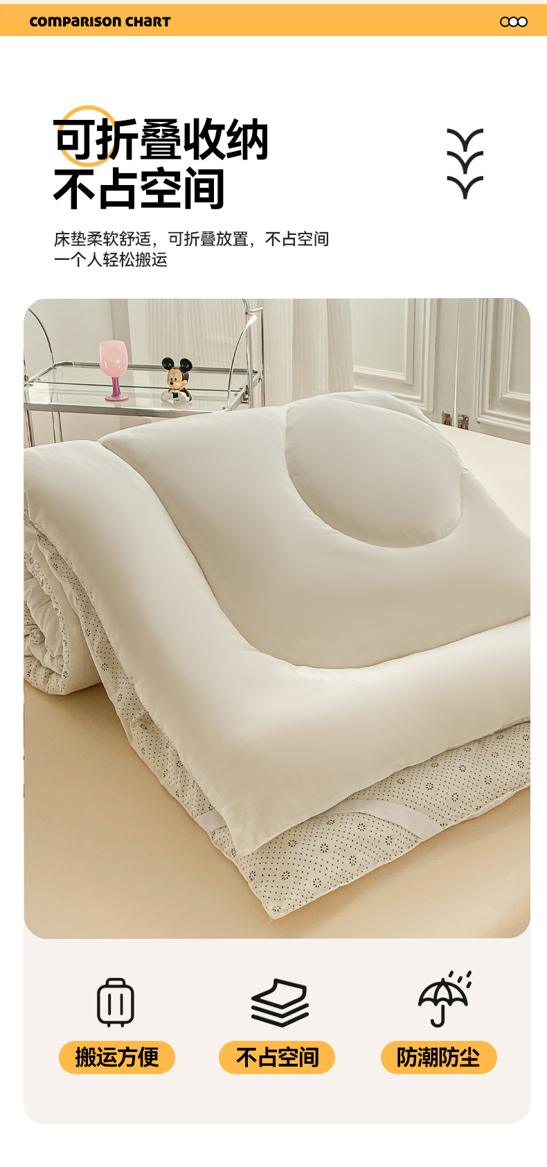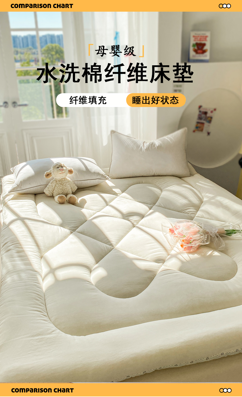 • 91家纺网 家纺一手货源 找家纺 缦卡琳家纺 2025新款水洗棉纤维羽丝棉床垫 经典白色