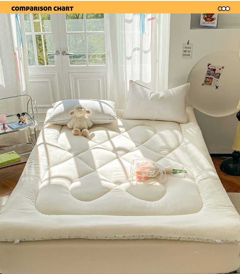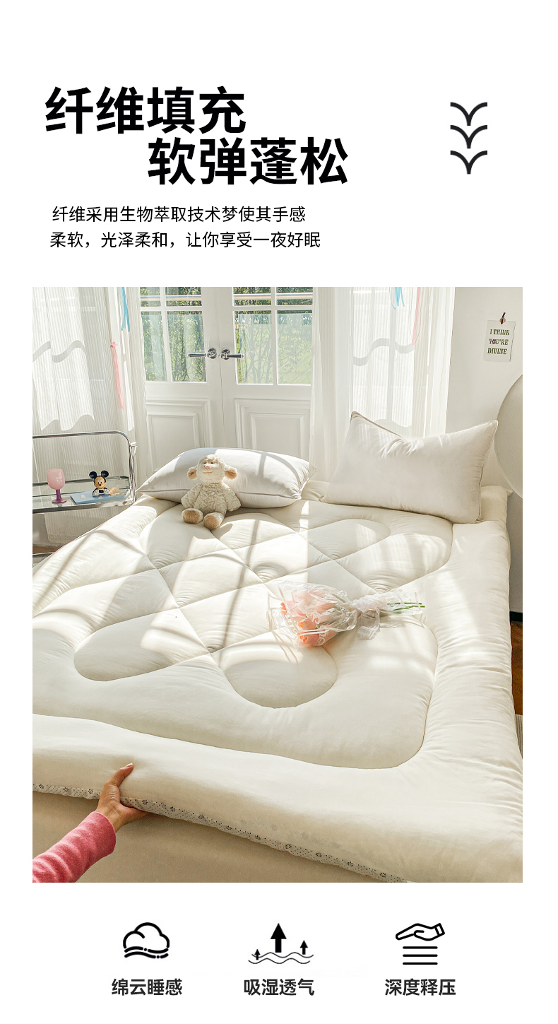 缦卡琳家纺 2025新款水洗棉纤维羽丝棉床垫 经典白色