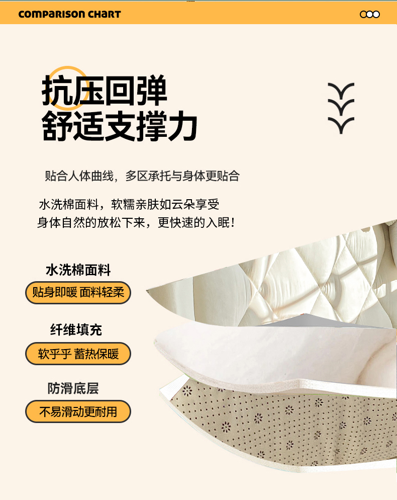 当前位置: 91家纺网 > 商品网购 > 床垫/床褥 > 缦卡琳家纺 2025新款水洗棉纤维羽丝棉床垫 经典白色