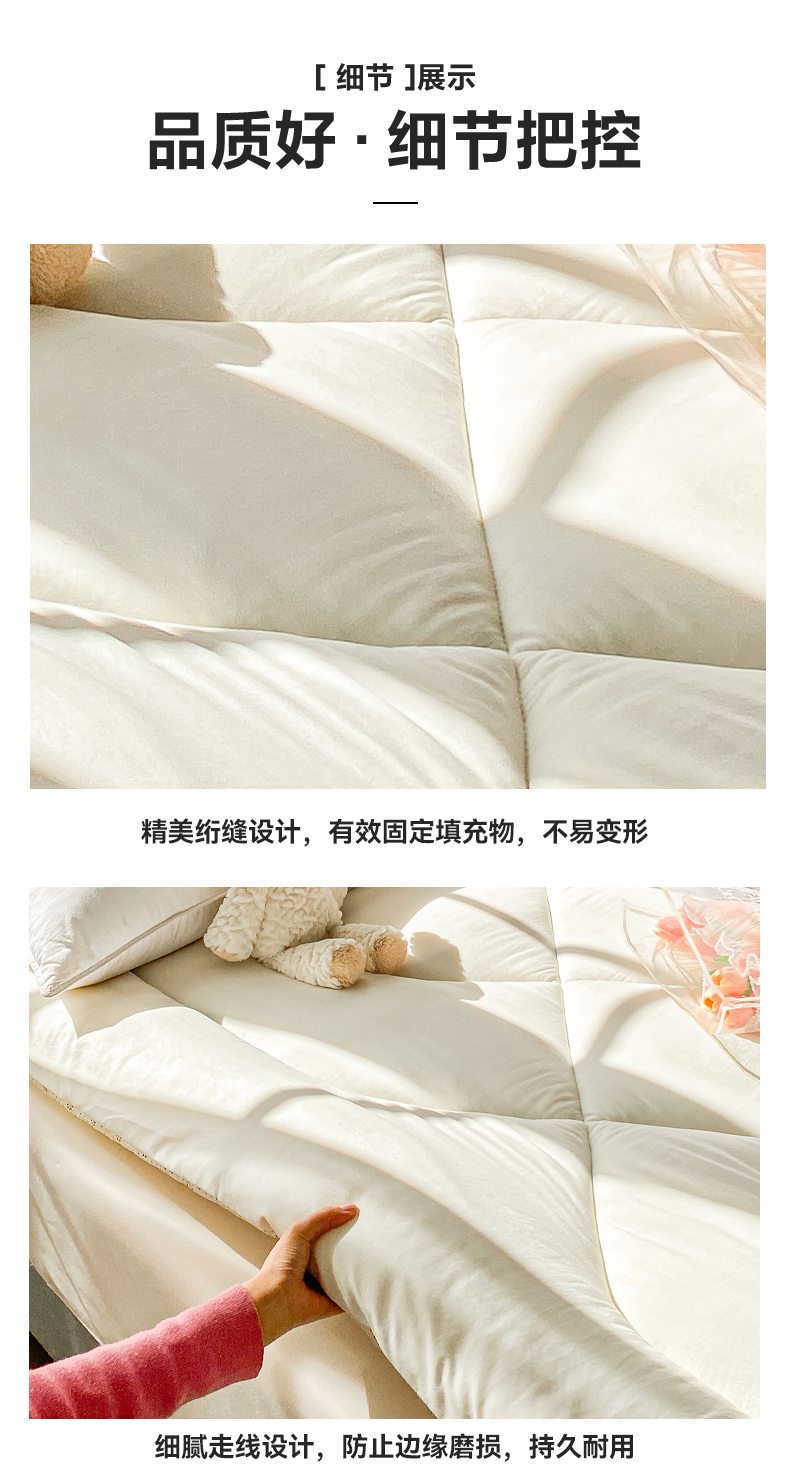• 91家纺网 家纺一手货源 找家纺 (总)缦卡琳家纺 2025新款水洗棉纤维羽丝棉床垫,快乐宝贝,草莓酪,高级灰,格纹熊,蝴蝶结,花丛小熊,经典白色,漫调时光,玫瑰花语,萌宠乐园,欧拉格,小熊院长,叶叶情思,樱桃之恋,游戏时间