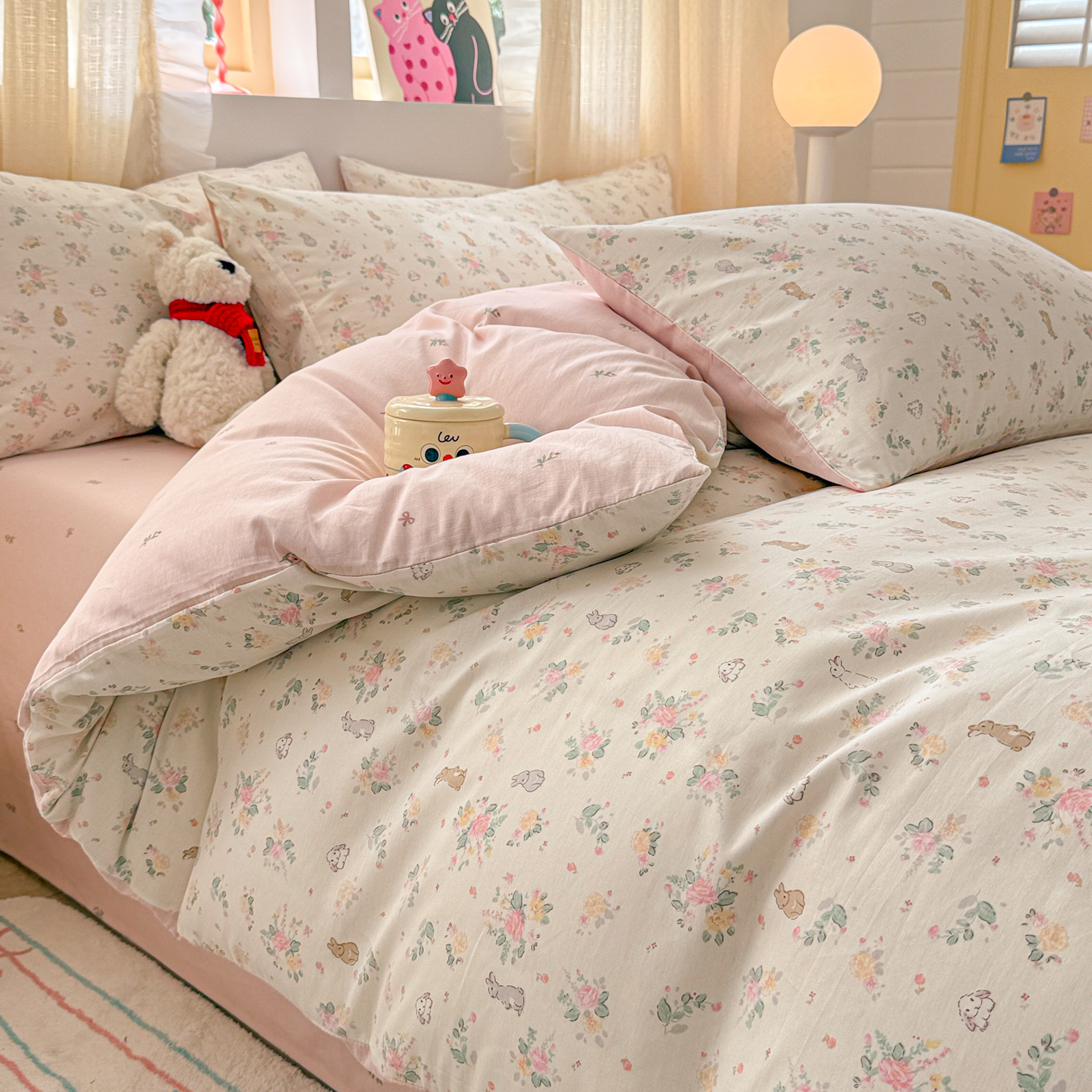 (总)呗旺鹿 2026新款全棉40支12868田园卡通小清新系列四件套,雅柔,蓝叶兔,软糖萌宠,三小只,童话乐园,小熊艺语,樱桃小象,H萝卜兔,L红茶兔兔,L欧包小奶兔,L浅糖兔叽