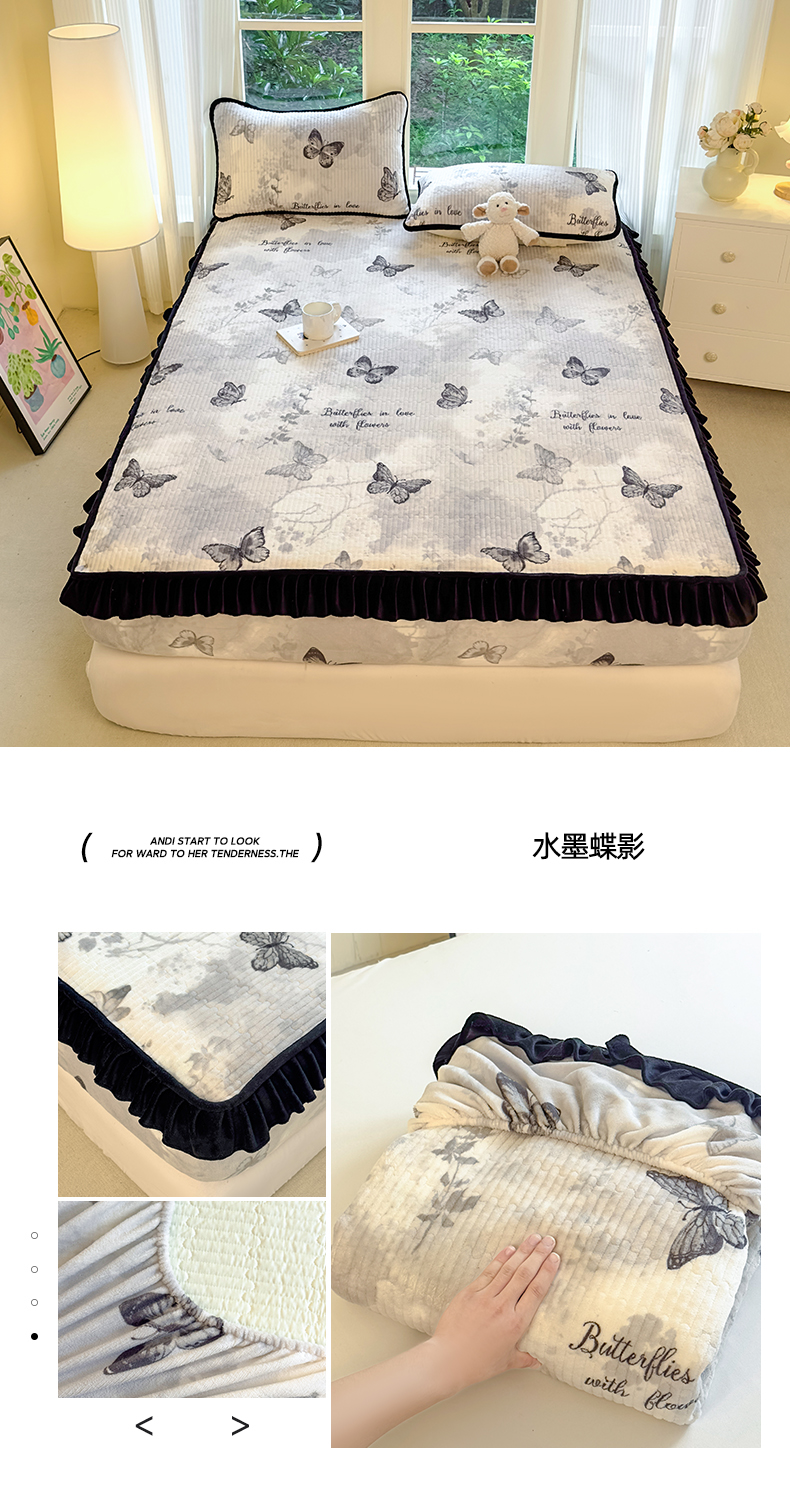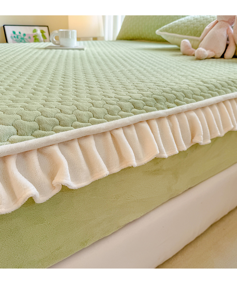 (总)欣宜家纺 2025秋冬新款韩版牛奶绒床笠法式花边床罩床垫保护套