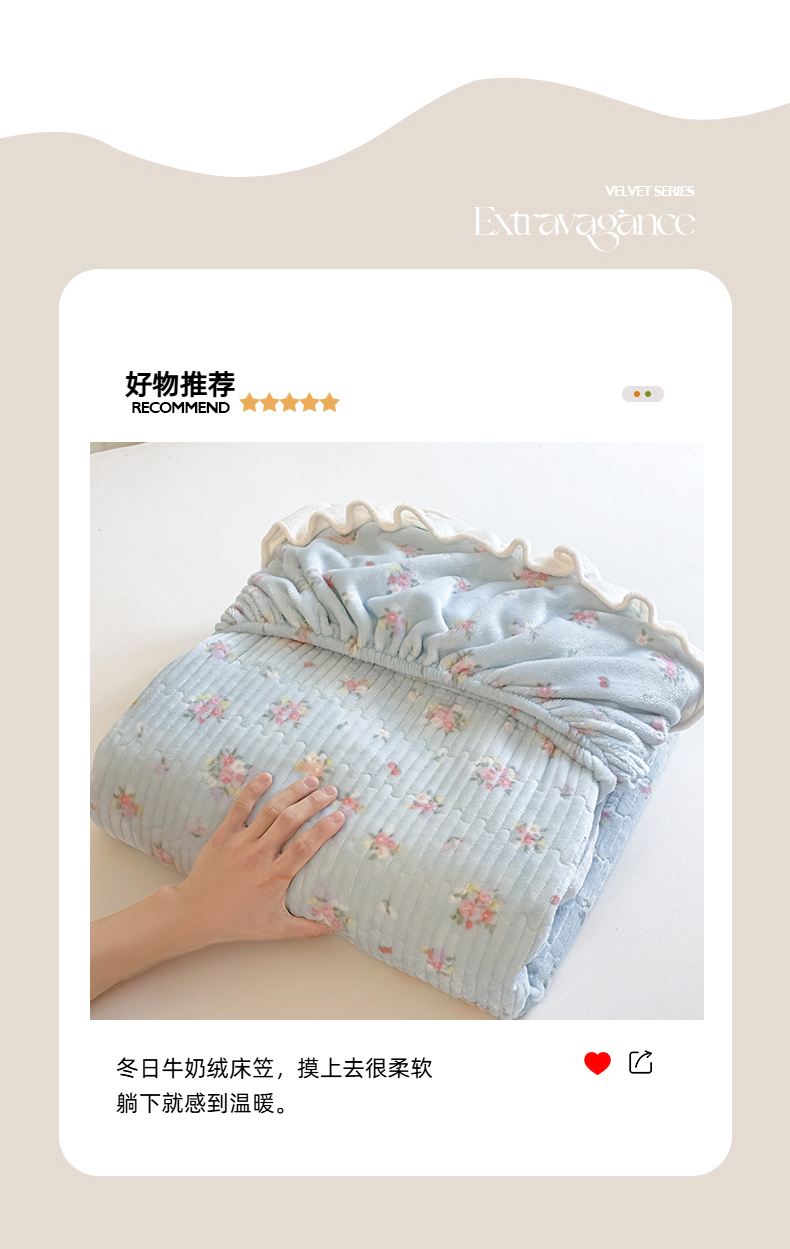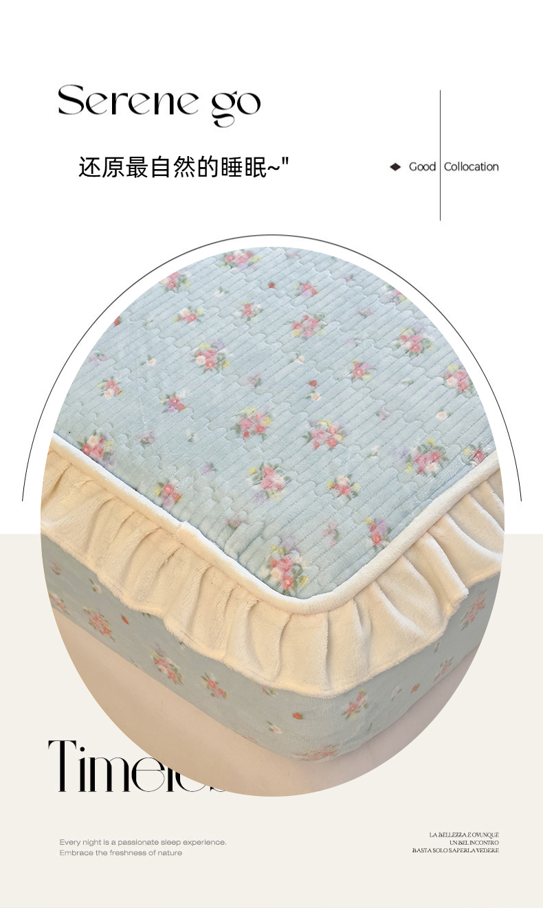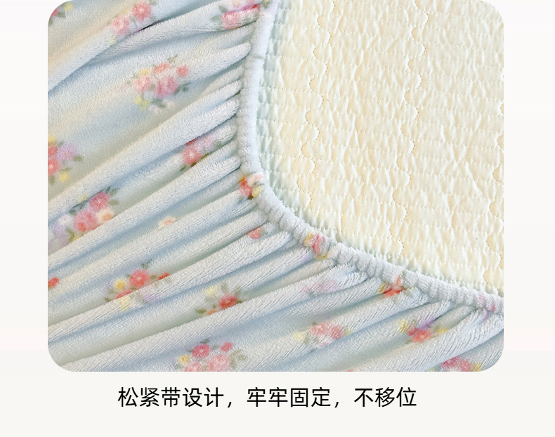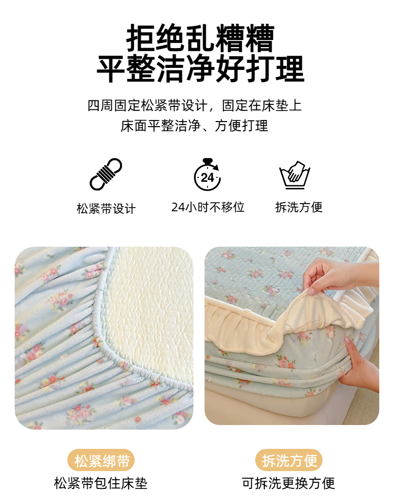 • 91家纺网 家纺一手货源 找家纺 欣宜家纺 2025秋冬新款韩版牛奶绒床笠法式花边床罩床垫保护套 碎花绿