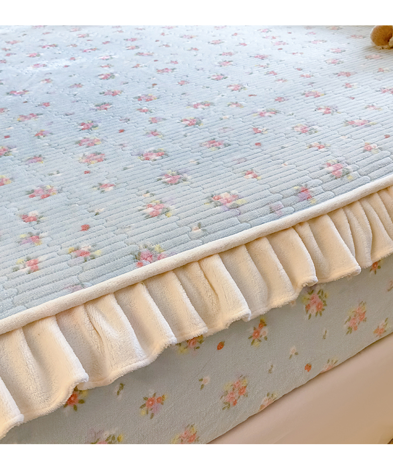 欣宜家纺 2025秋冬新款韩版牛奶绒床笠法式花边床罩床垫保护套 碎花绿