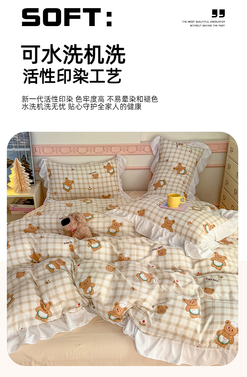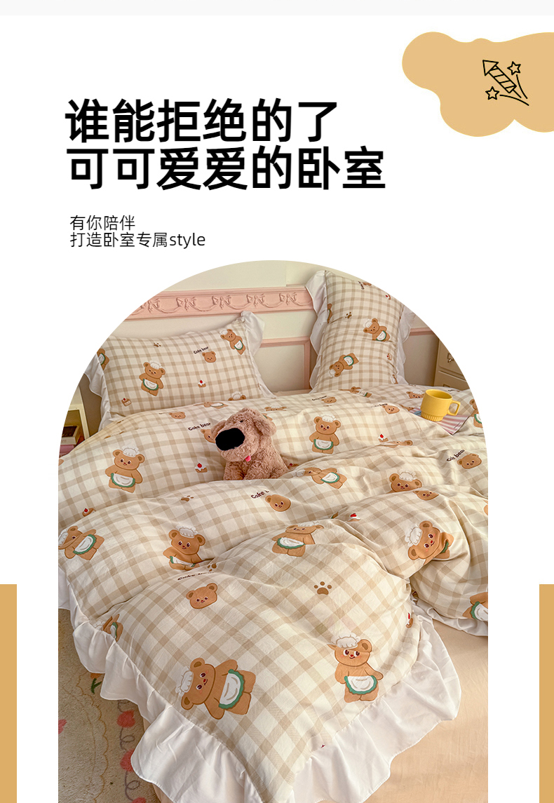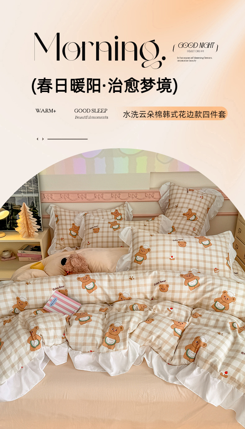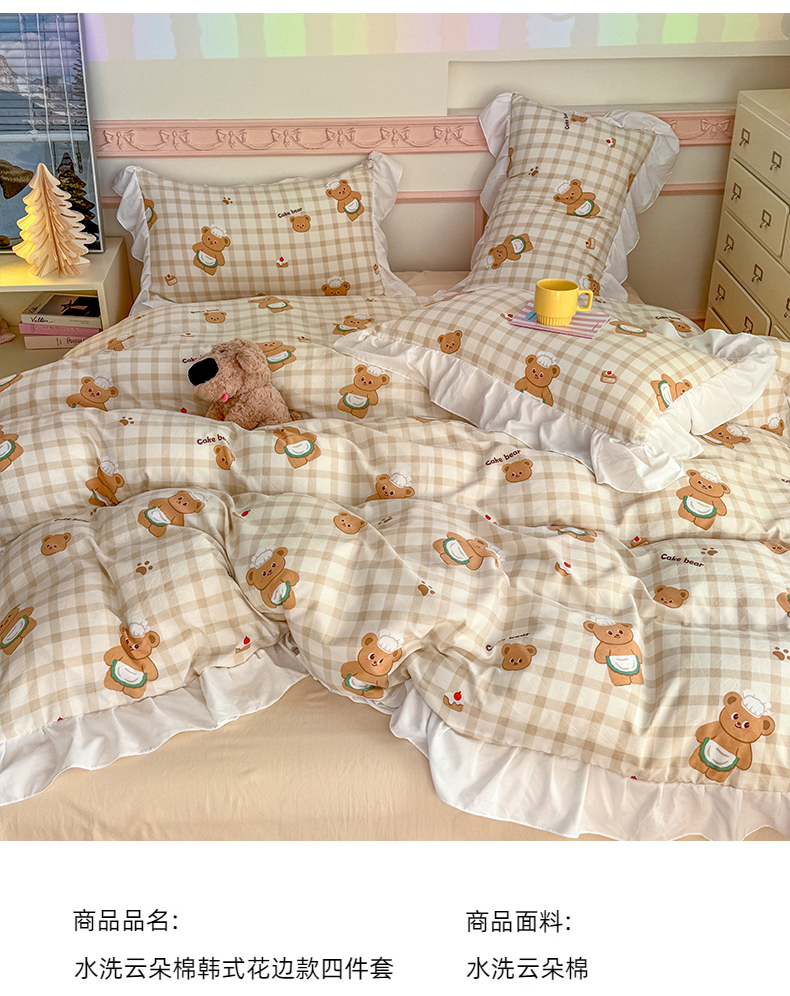 当前位置: 91家纺网 > 商品网购 > 床品套件 > 四件套 > 水洗棉四件套 > 温眠家纺 2025新款水洗云朵棉韩式INS减龄花边款四件套 乖乖熊