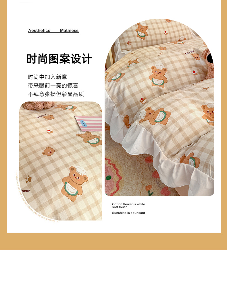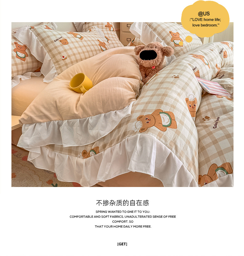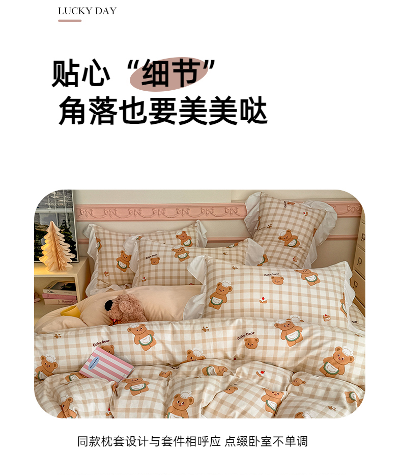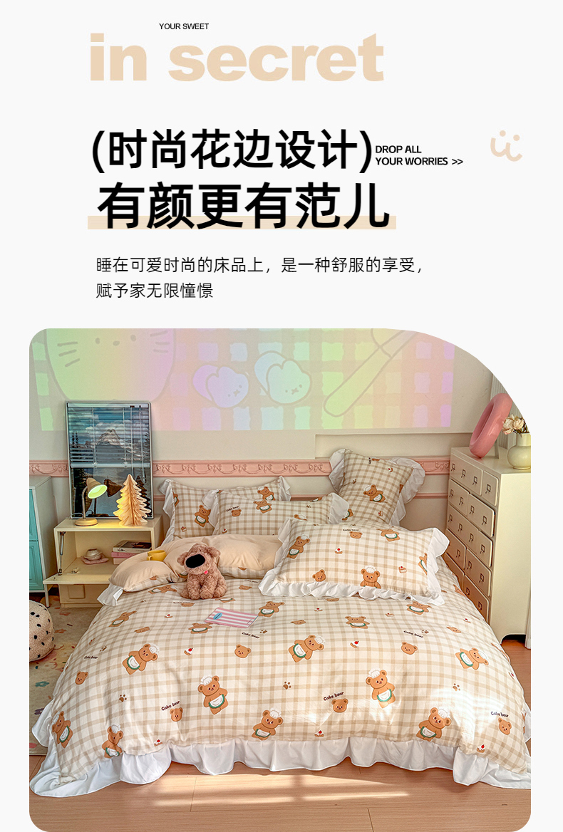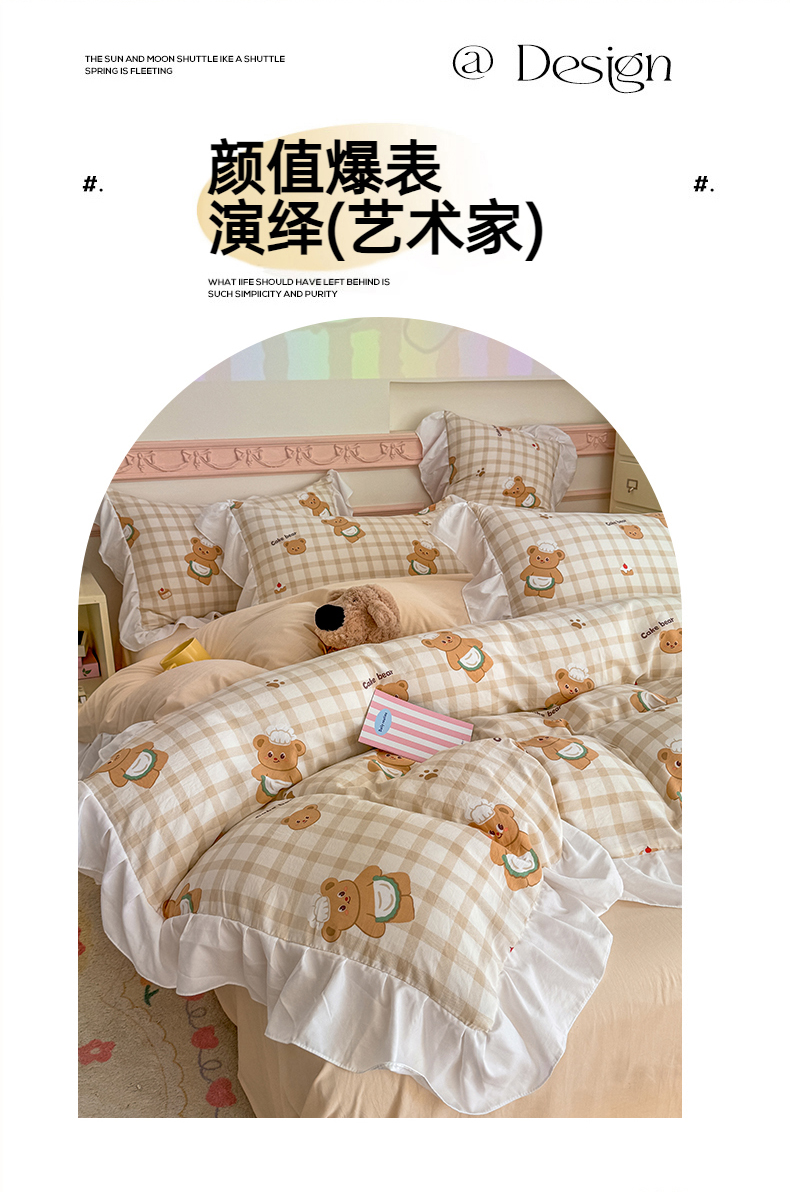 当前位置: 91家纺网 > 商品网购 > 床品套件 > 四件套 > 水洗棉四件套 > 温眠家纺 2025新款水洗云朵棉韩式INS减龄花边款四件套 乖乖熊
