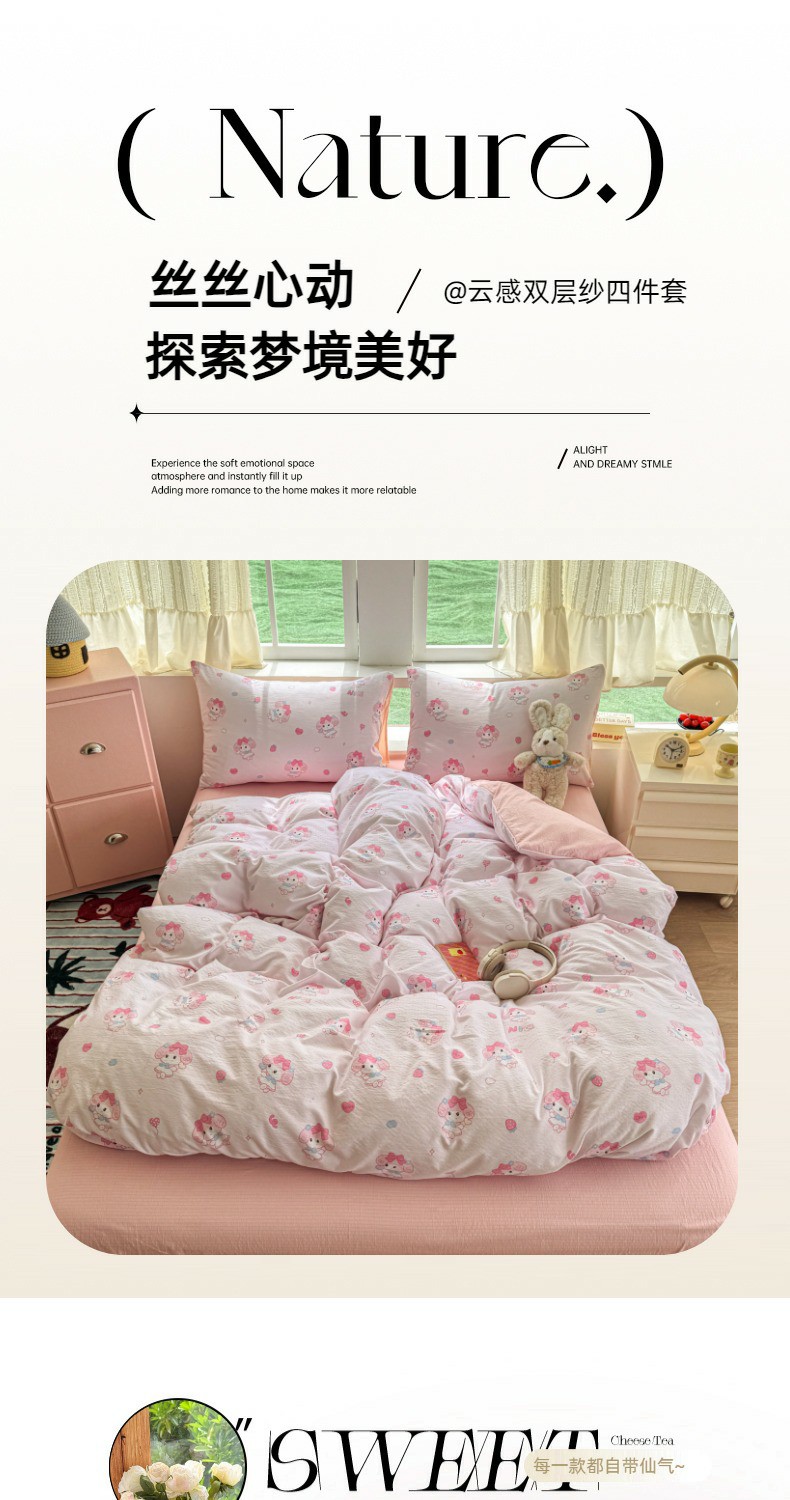 当前位置: 91家纺网 > 商品网购 > 床品套件 > 四件套 > 双层纱四件套 > 温眠家纺 2025新款云感针织双层纱四件套 莓乐蒂