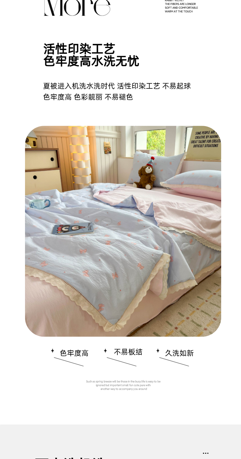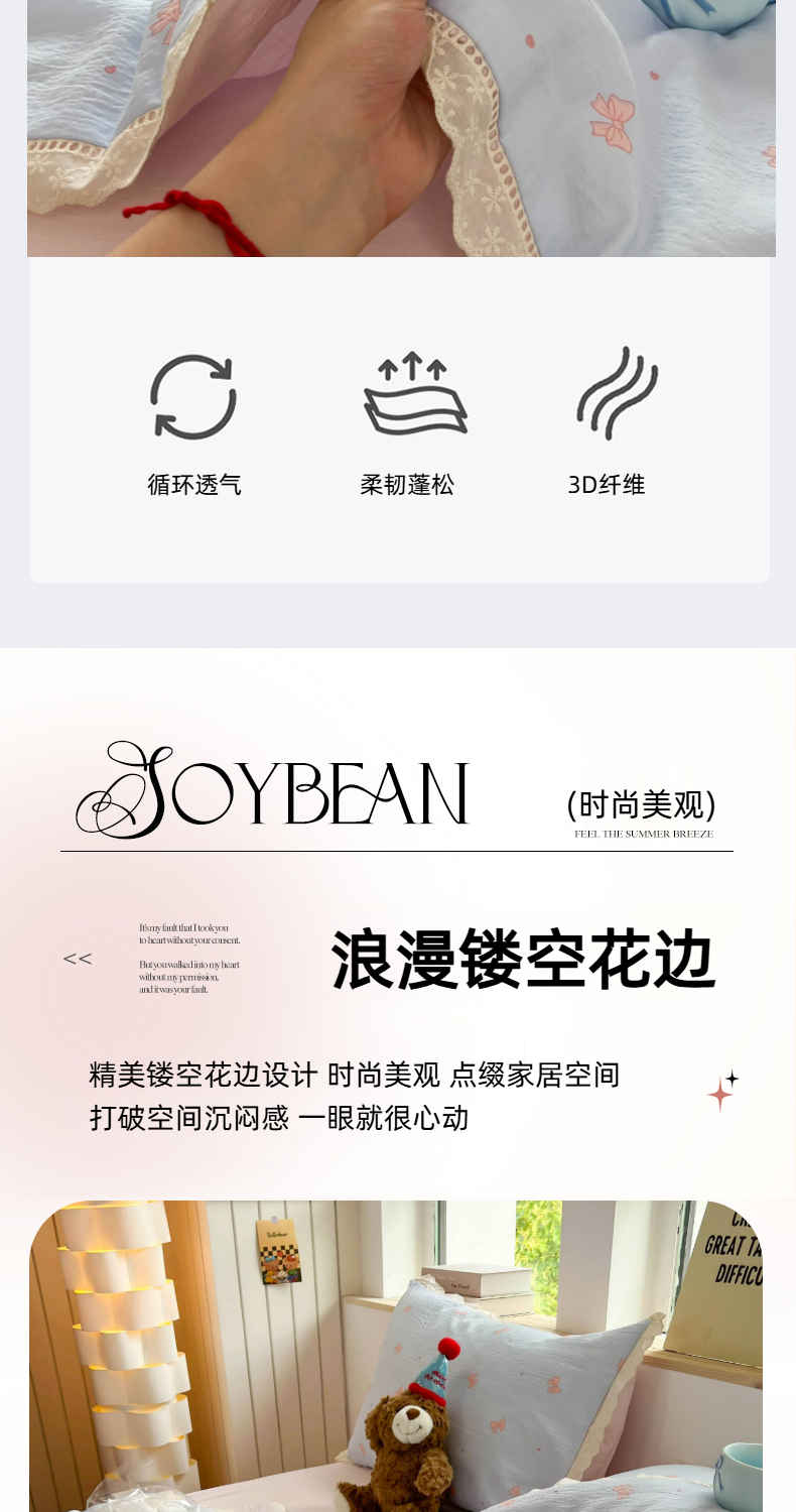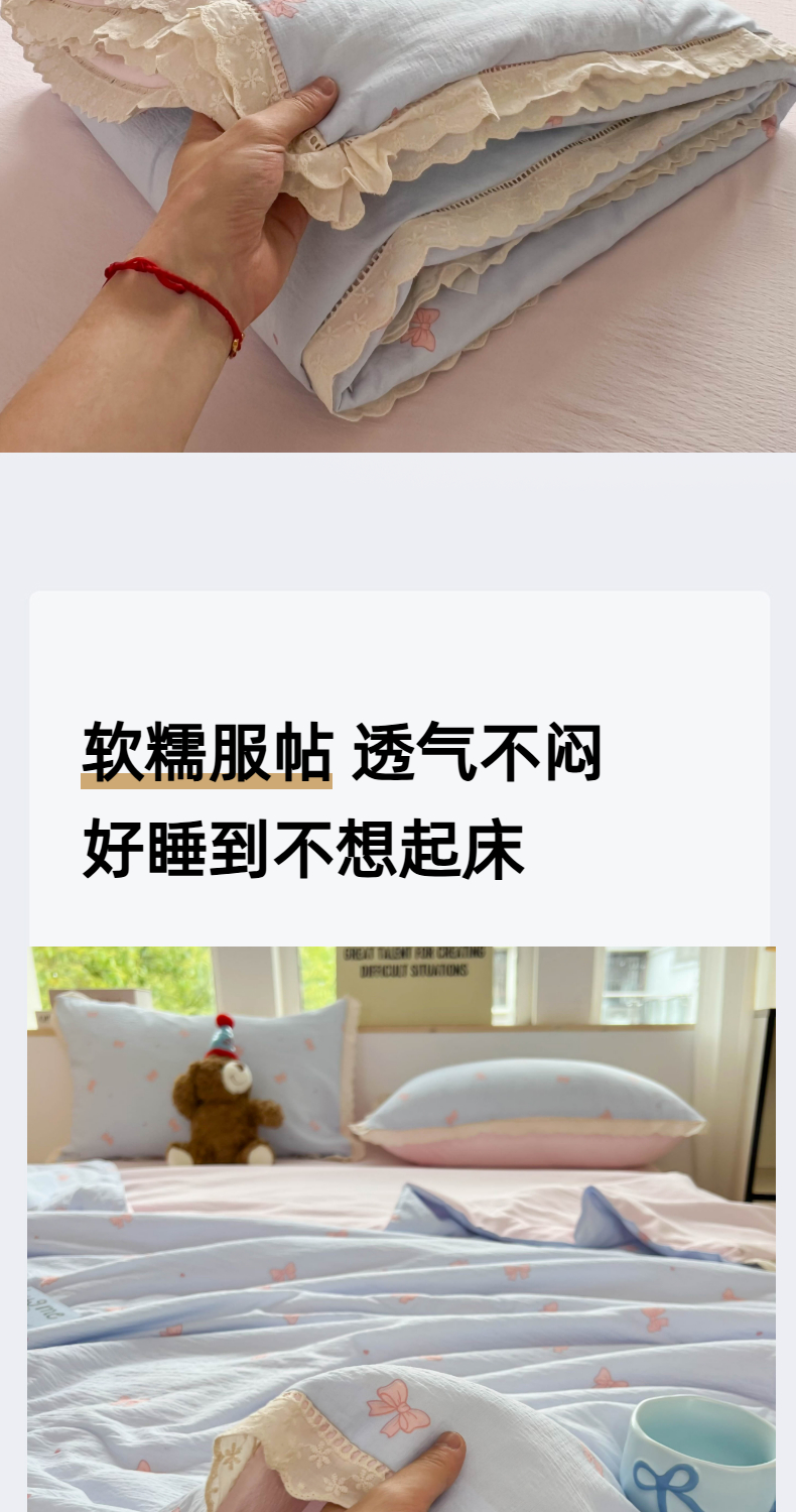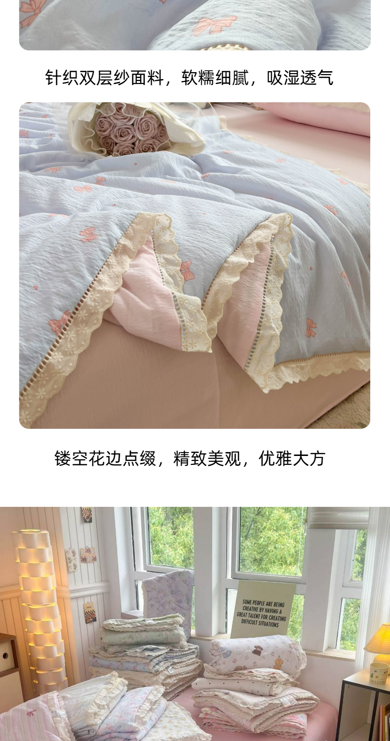 商品名称:温眠家纺 2025新款云感双层纱镂空花边夏被四件套 清新蝴蝶结
