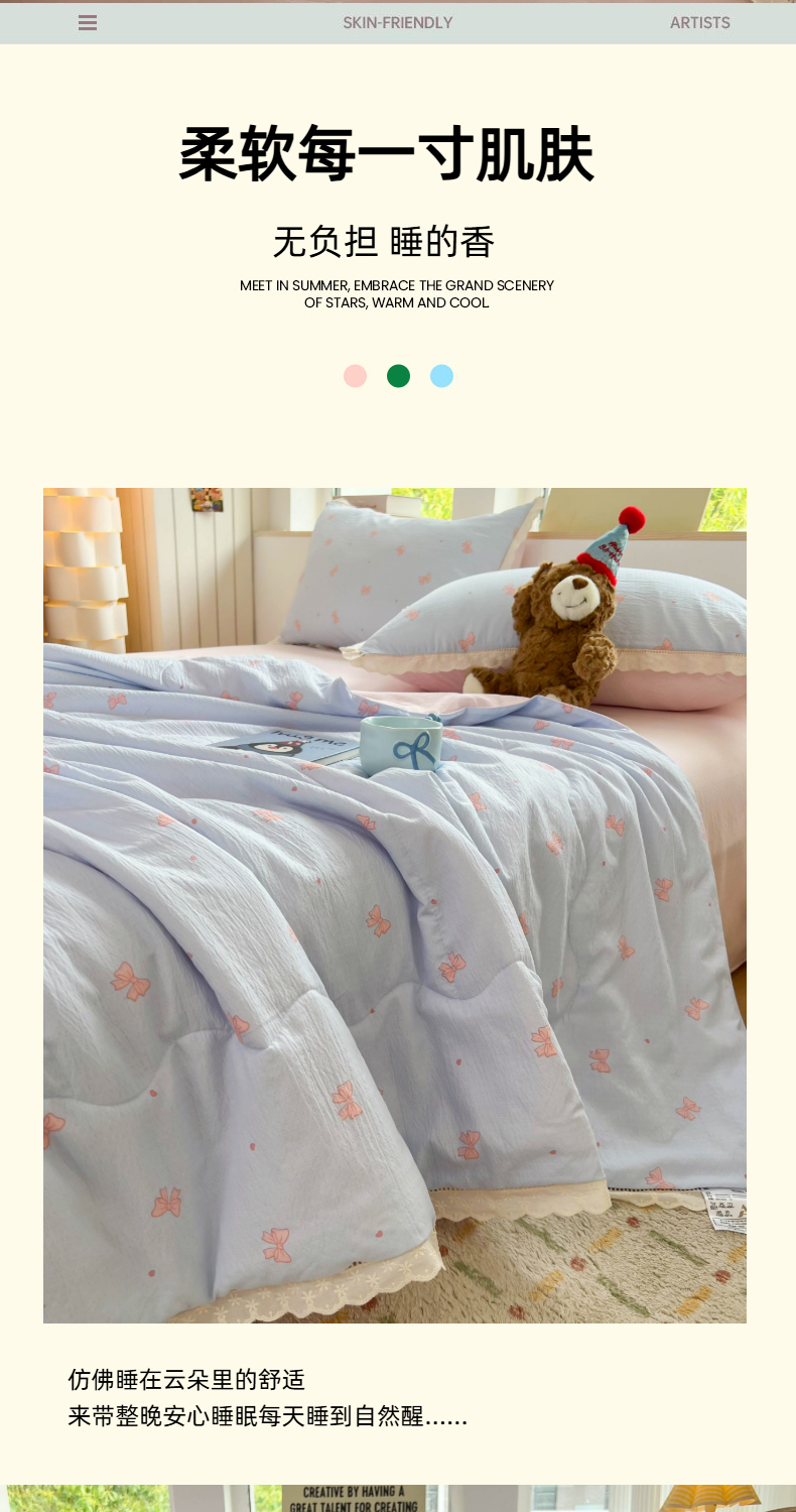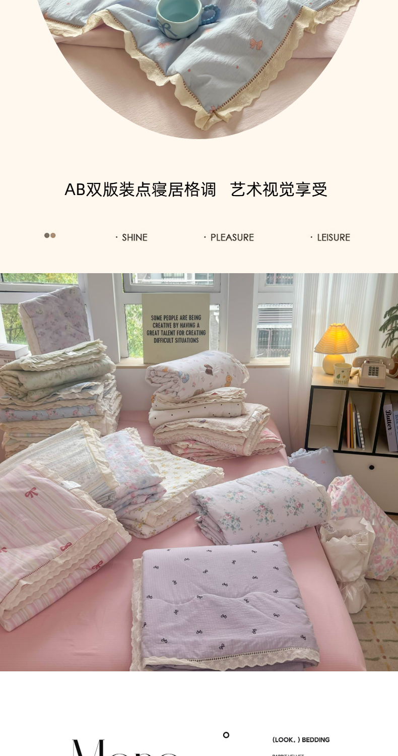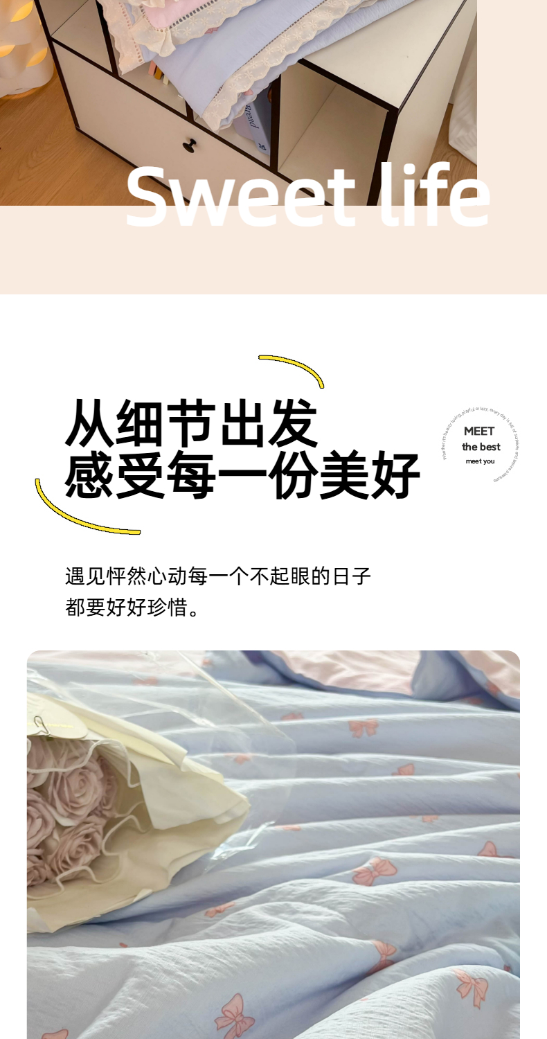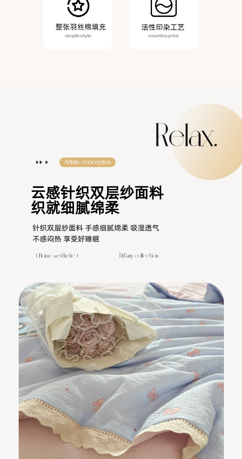 商品名称:温眠家纺 2025新款云感双层纱镂空花边夏被四件套 清新蝴蝶结