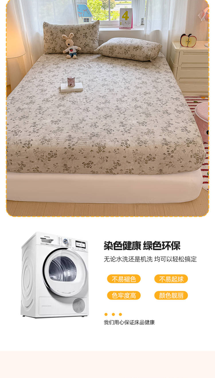 (总)温眠家纺 2026新款古法水洗棉加厚高克重双层纱单床笠床笠单件单品床笠,条纹南瓜,彩波波,蛋糕小猫,扶桑花未落,花韵,绮梦花间,素影,挽星入梦,汪星人,星星人,樱之桃桃,云间花述,织梦,紫菀