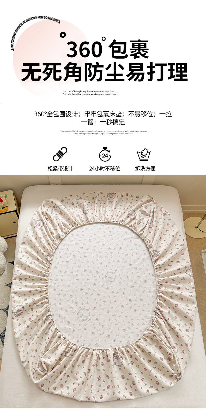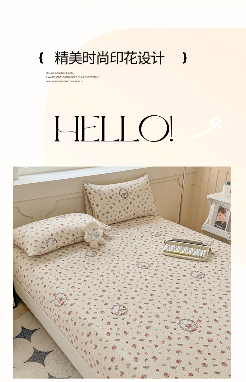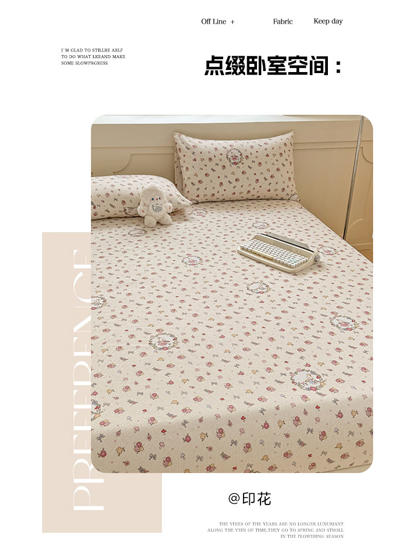 商品名称:(总)爱彼家纺 2026新款舒适透气老粗布凉席印花床笠单件-床笠三件套